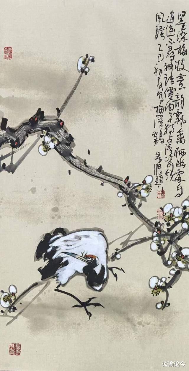 作为艺术实践的有心人,他持续观照社会生活与人文思潮。经十余年淬炼,近两三年更见“变法出新”:运笔留心起收顿挫,亦注重行笔中的徐疾节奏,点线形质与张力兼顾;收放间构形随心,物象造型含夸张之妙——从早年“循形绘鹤”到如今“破形展枝”,直抵“应物象形”背后的生命高度。技进乎道,这份突破与升华,缘于他半生修养沉淀和对生命人文的通透理解,让画品与人品自洽同辉;于巴渝画坛而言,亦是地域画者破圈层、远浮躁的范本。他之变法,系沉潜渐修后的自然流露,以“本真”为基,融十年体悟入笔墨,让“写意”更具生命温度,亦令其画辨识度水涨船高。其写意精神在动静转换间张扬与回归,画面感和创作维度更富耐人寻味的意蕴与境界。