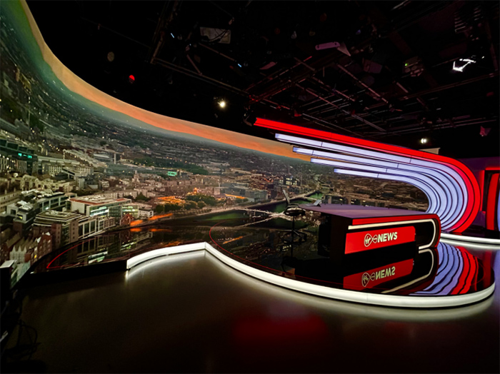 近日,爱尔兰最大的商业广播公司之一,维珍媒体电视台(Virgin Media Television)完成了其核心新闻演播室的显示系统升级。该项目采用奥拓电子261块CV-MINI系列产品,打造出一面宽度超过17米的无缝曲面LED大屏,为这一覆盖爱尔兰62%电视人口的主流媒体构建面向未来的演播室视觉系统。