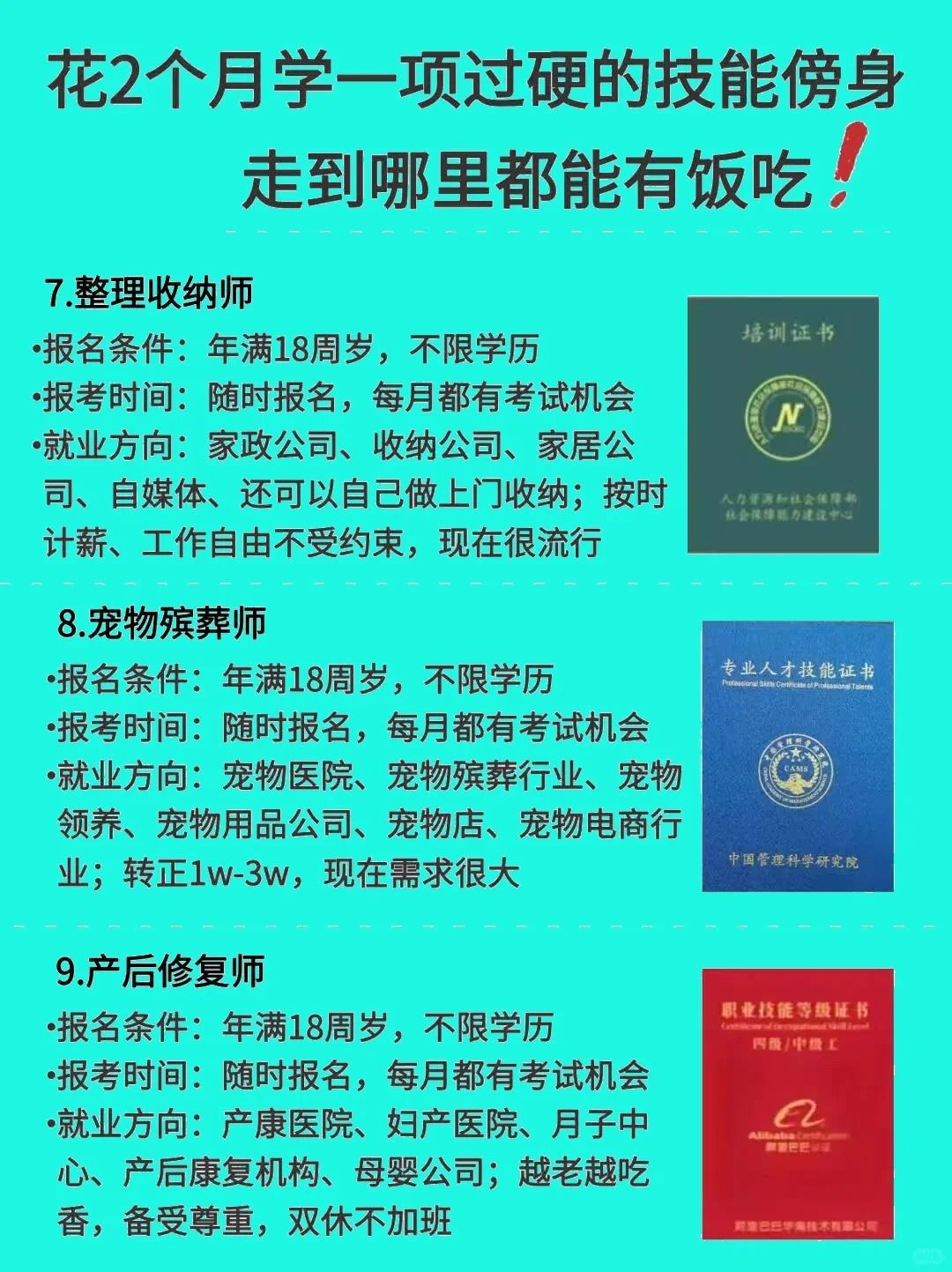 🚀【新兴职业|小众吃香】 ▪️ 宠物殡葬师:月入1-3W|宠物行业需求暴增 ▪️ 产后修复师:备受尊重|月子中心/医院急需 ▪️ 老年人能力评估师:养老行业风口|越老越值钱 ——————————————