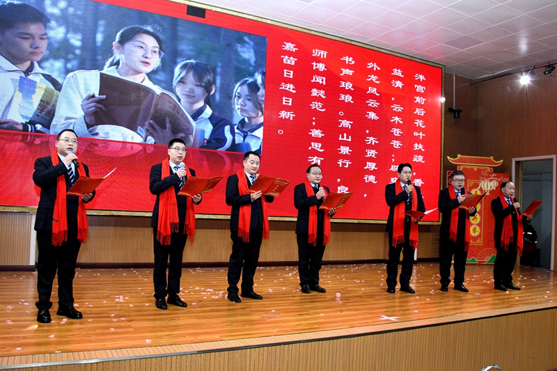 随后,吴栋同志发表新年致辞。他紧扣时代脉搏,深入阐释二十届四中全会精神,系统回顾学校落实立德树人根本任务的坚实足迹,并向全体潢高人寄予殷切期望。吴栋强调,全体师生要永葆“听党话、跟党走”的政治本色,将“小我”成长自觉融入“中国式现代化”的“大我”蓝图,在砥砺品格中锤炼初心,在增长才干中勇担使命,努力成长为堪当民族复兴重任的时代新人。