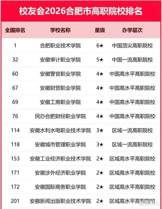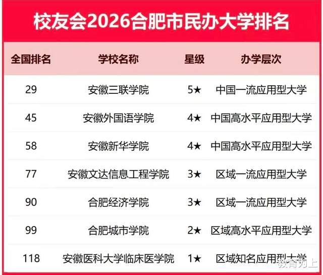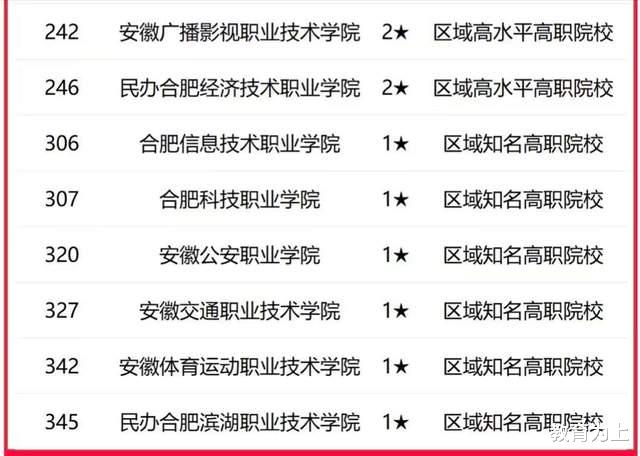 此外,安徽三联学院、安徽外国语学院居合肥市民办大学前两名,安徽职业技术学院、安徽审计职业学院居合肥市高职院校前两名。