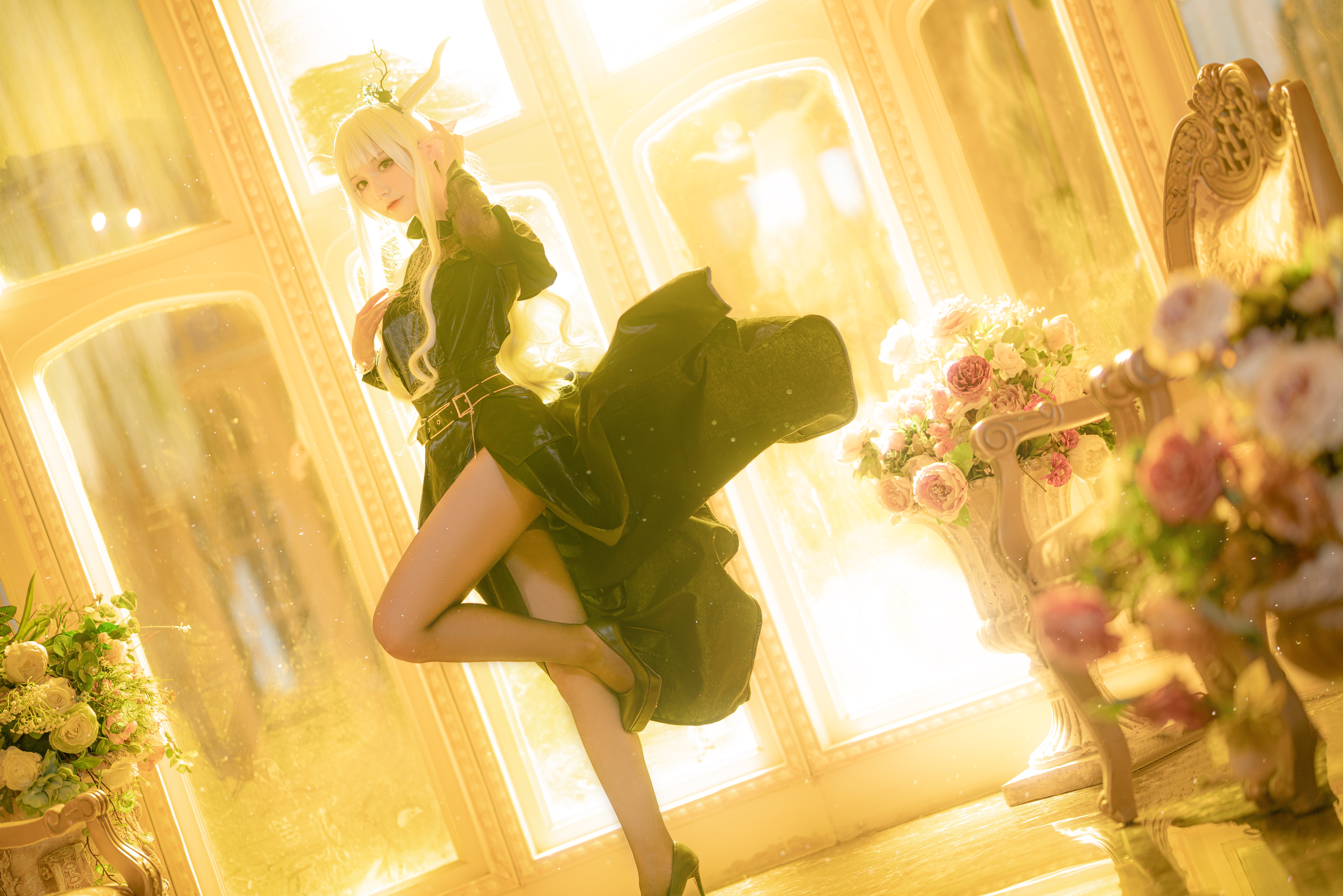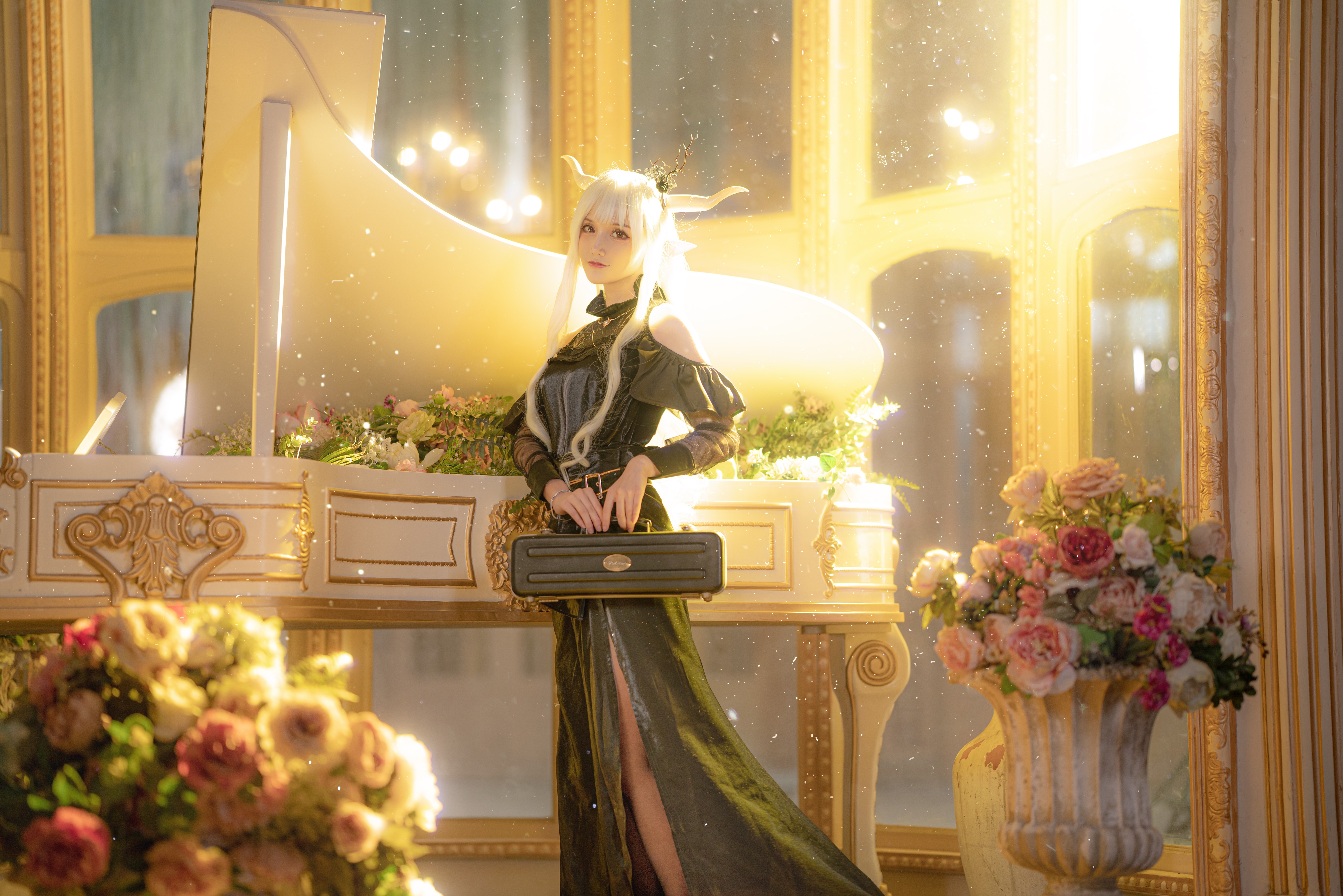 代表作赏析:《明日方舟》闪灵音乐会COS——冷艳与温柔的完美平衡在2021年的《明日方舟》闪灵音乐会主题COS中,仙九Airi凭借对角色“剑圣医师”的深刻理解,塑造了令人惊艳的舞台形象。闪灵作为游戏中兼具治疗与战斗能力的六星干员,其冷峻外表下暗藏温柔的特质被仙九Airi演绎得淋漓尽致: