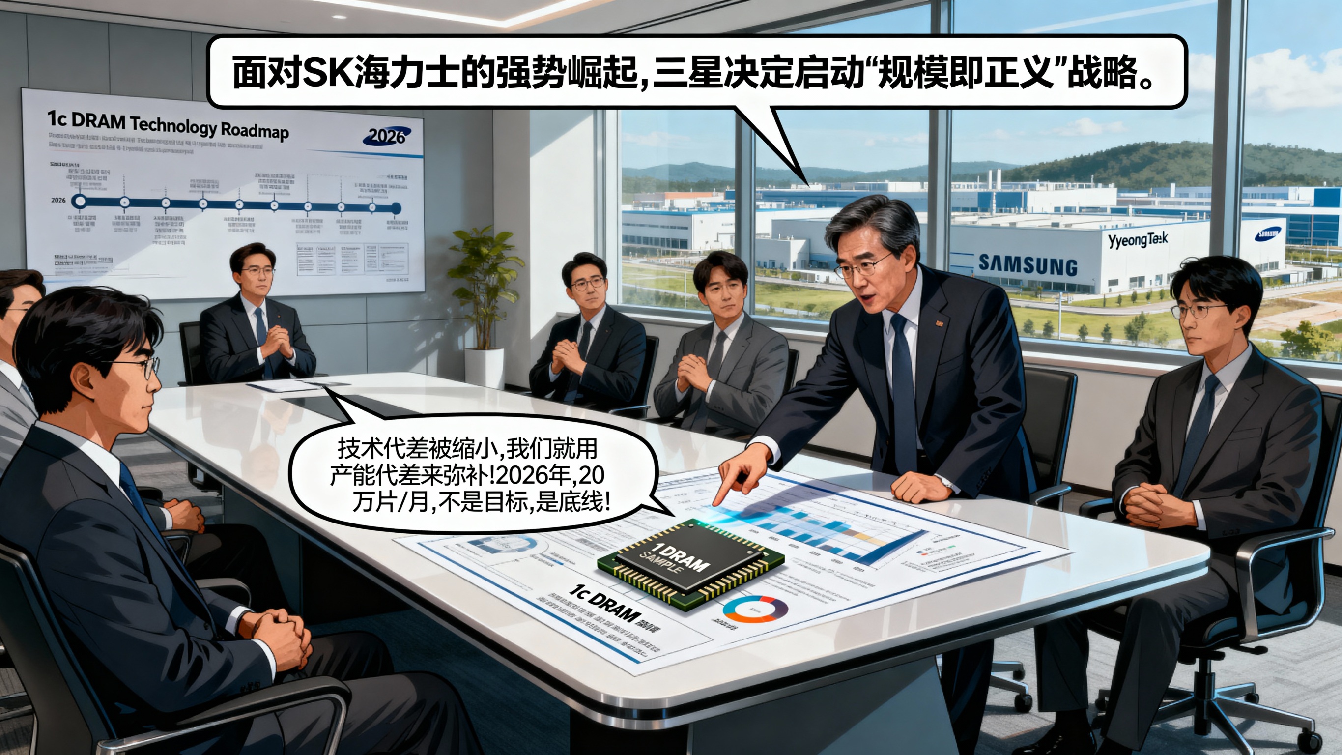 消息很短,但字字千钧:三星计划到2026年底,将10纳米第六代(1c)DRAM的月产能强行拉升到20万片晶圆。