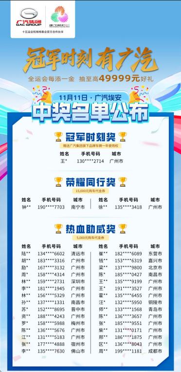 参与方式更是轻松到没门槛。只需打开“全民好运汽”小程序,或关注广汽集团及其五大品牌的官方微信公众号,填写简单信息就能参与。从11月10日到20日,每天24点前,中奖名单都会准时公布在这些平台。不少网友已经晒出自己抽中的代金券,直呼“看比赛顺便把车钱省了,广汽太懂我们了!”
