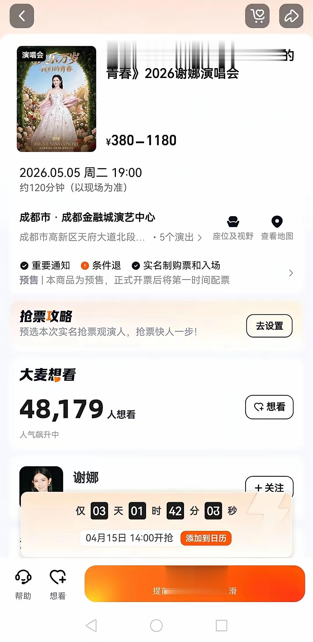 将于5月5日在成都举办个人首场演唱会,主题定为“快乐万岁·我们的青春”,票价从380元到1180元分六档发售。
