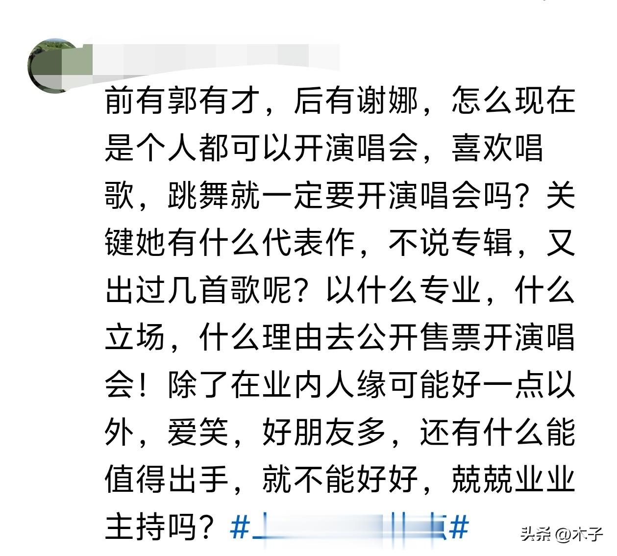 #谢娜 是个人就能开演唱会了# #谢娜有什么代表作敢开唱# 等话题一夜冲上热搜,评论区两极分化严重,嘲讽声几乎盖过了支持声。
