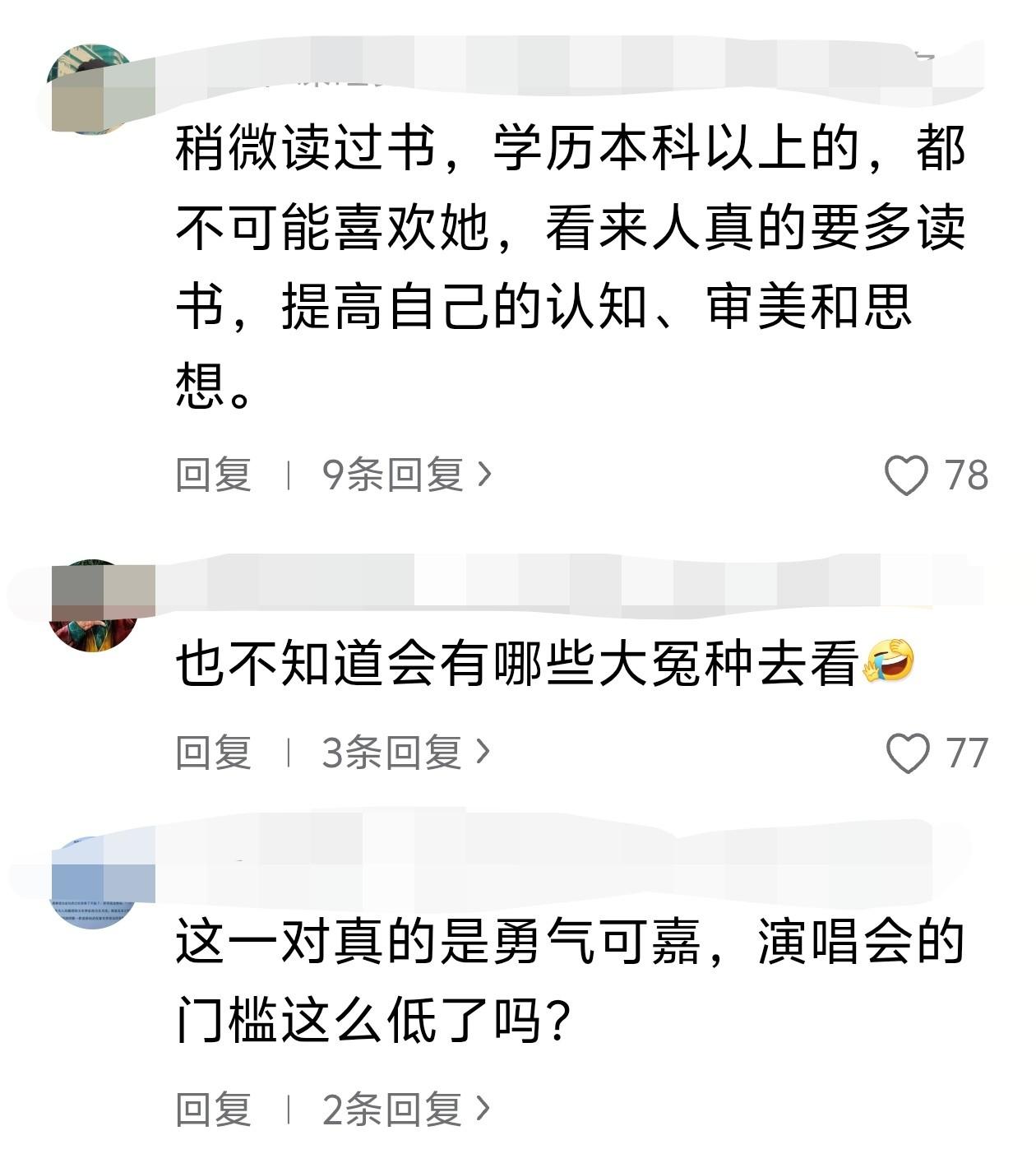更有网友毫不留情地评价:“前脚刚为了老公和人撕得头破血流,后脚就赶着开演唱会割韭菜,这哪里是藏了多年的音乐梦,分明是算准了情怀变现的生意经。”