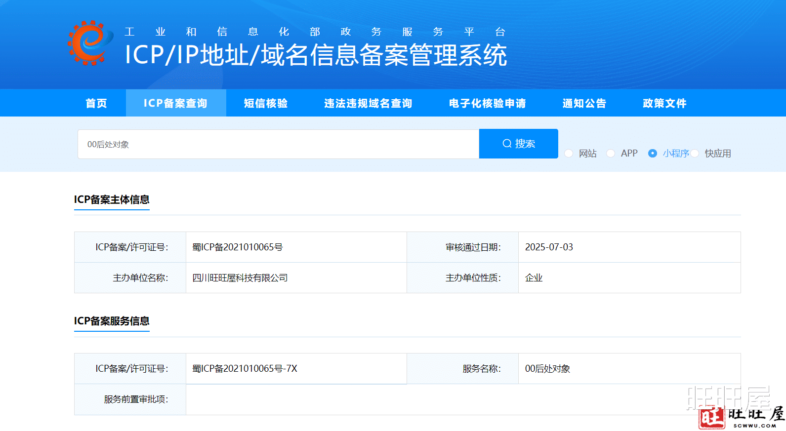00后处对象小程序已通过工信部备案