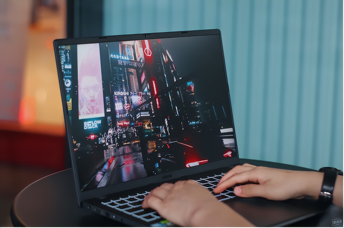 华硕无畏Pro16 2025的外观设计同样潮范儿十足。哑光黑机身搭配青色背光键盘,既低调又充满科技感,时尚感满满,适合年轻人的审美。同时两侧还配备了丰富的接口,包括全功能USB-C、HDMI 2.1 FRL、USB-A等,能够轻松连接外部显示器、移动硬盘、键鼠等设备。
