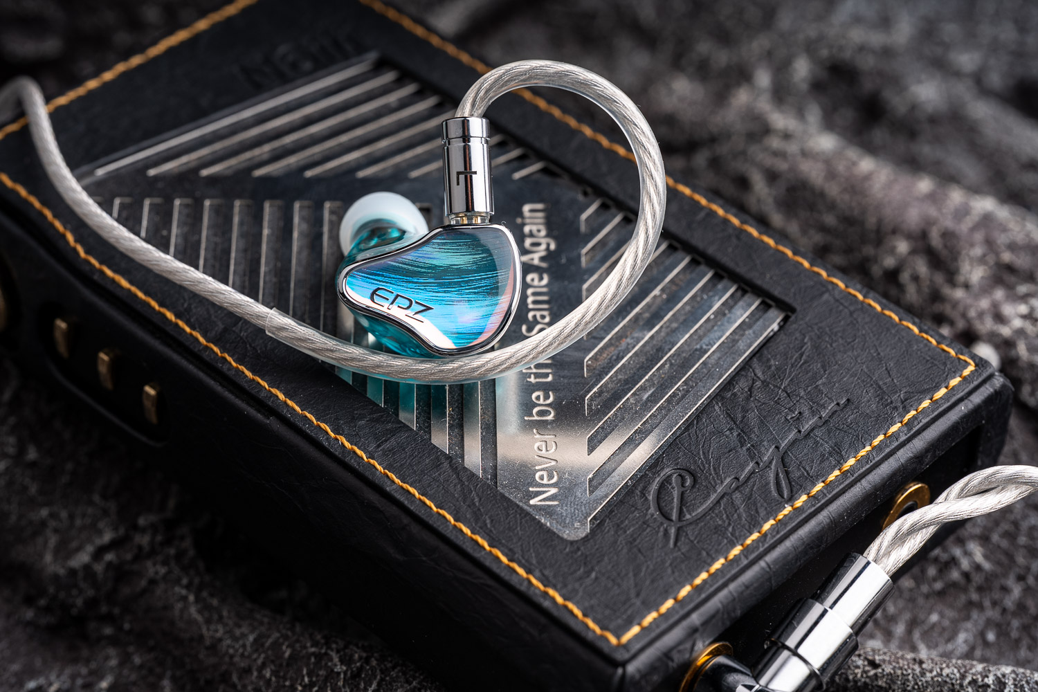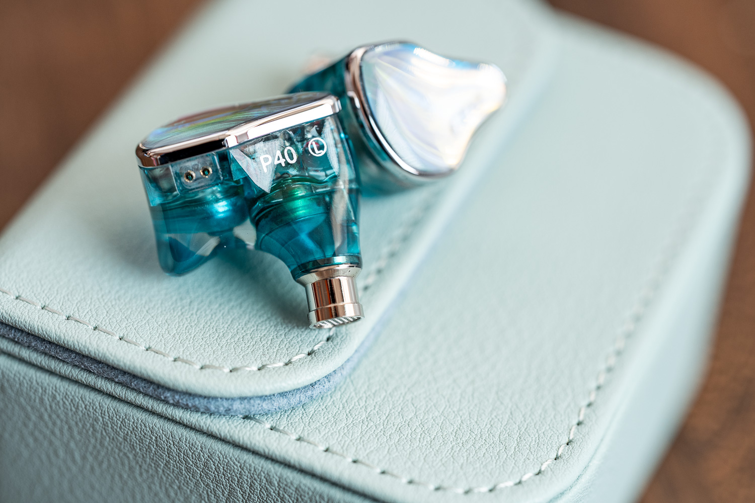 P40虽然在名字上感觉和P50是同系列的东西,但是外观风格则完全不同,乍一看面板是树脂材料,实则是基于镭射肌理纹的CNC金属工艺面板,并且与内侧的连接处做了一个亮面的金属中框来提升视觉层次感。这个面板是属于非常容易反射出强光的,但实际上在暗处会更好看,非常有层次的蓝色不规则弧线型竖纹,在不同的角度下有不同的层次,而且整体依然是保持了近似于纯树脂腔体的那种轻量化,当一个耳机腔体够轻够小的时候,其实就不那么考验人体工学的设计能力,但EPZ多年的代工与生产制造经验刚好在这块又是强项,毕竟当年主力出货产品曾经是TWS,佩戴的舒适度、贴合感,都很有保障。