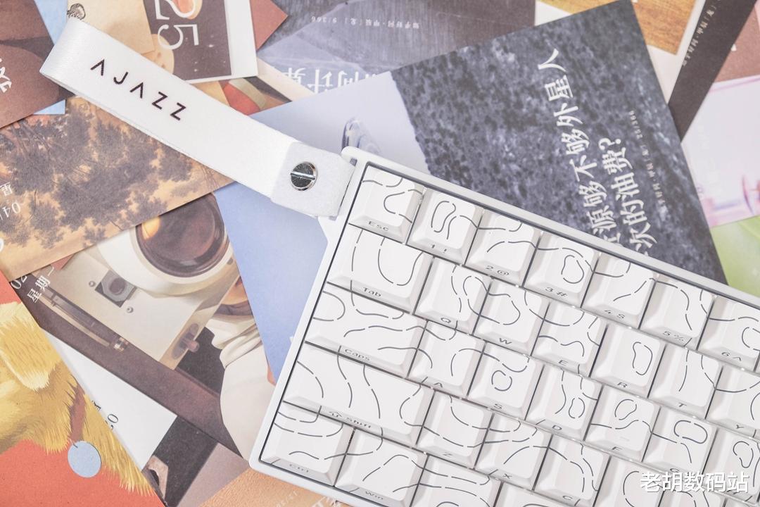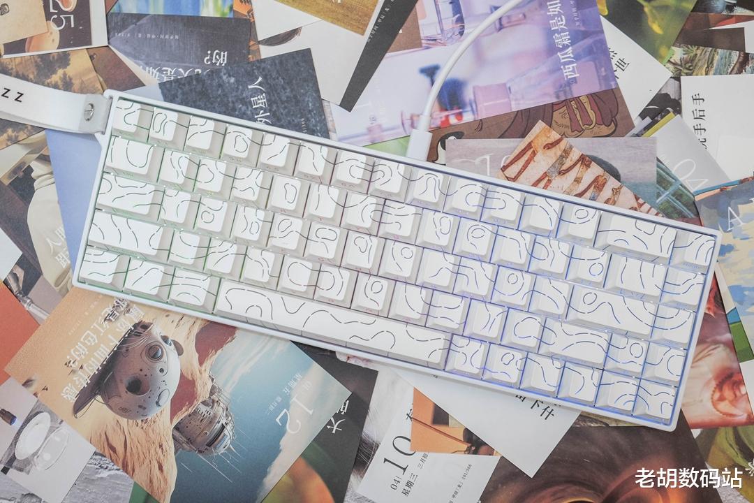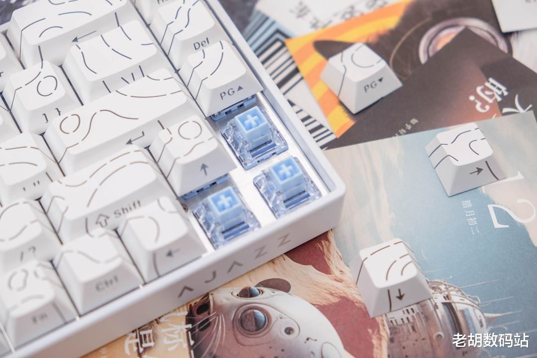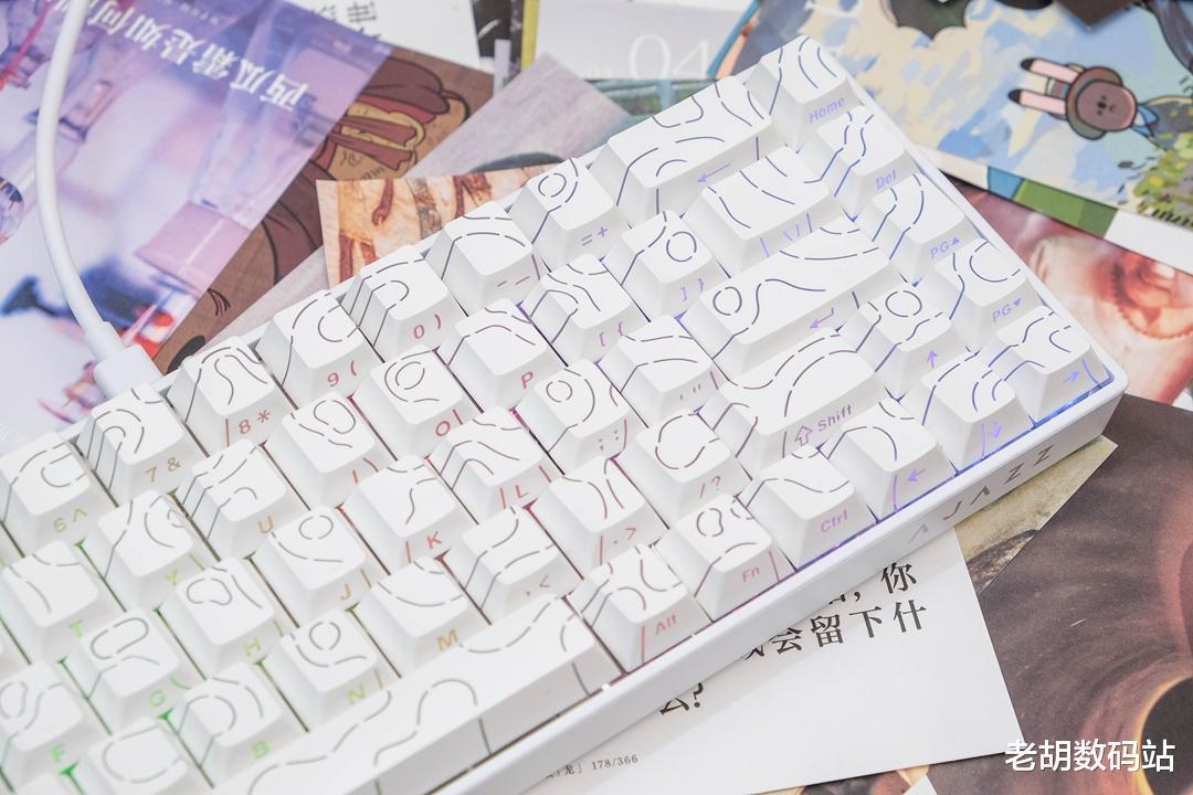 我这款是等高线白配色的版本,颜色很个性,键帽是PBT材质,耐磨不打油。最特别的是侧面那个飘带设计,可以自己拆换,后期如果想换个颜色或者DIY一条专属飘带,完全没问题,给桌面搭配增加了很多乐趣。