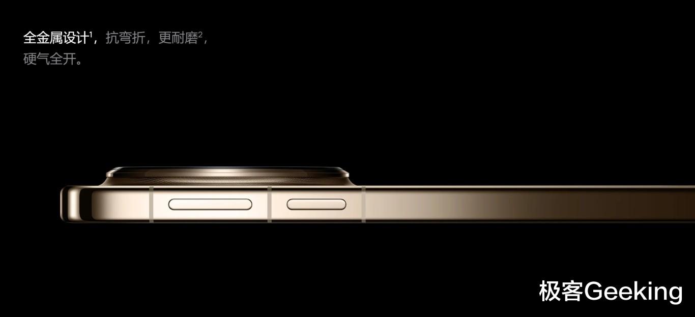 在机身材质上也有很大变化,Pro Max 机型采用金属后盖+铝金属中框的罕见用料,RS 非凡大师则是玻璃后盖+钛金属中框。