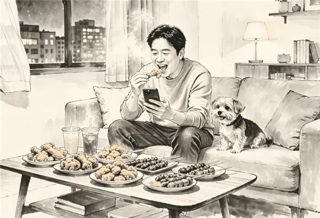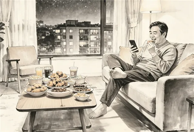 至于食欲,是另一重温柔的陷阱。一位友人,每晚十点准时点开外卖软件,并非饥饿,只是觉得“这个时辰,该吃点什么”。炸鸡、烧烤、奶茶,在深夜里散发莫名诱惑,入口时欢愉,饱腹后愧疚,可次日依旧重复。暴食之后,慵懒困顿,腹满如鼓,无法集中精神,无法安然入眠,只是瘫软如一头被喂饱的宠物。旬余,镜子给出答案:身材走样,眼神黯淡。你开始厌恶自己,却又无力改变,于是愈发沉溺于吃喝。