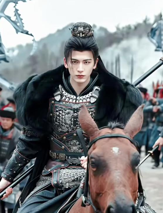 《逐玉》第一个出圈的神图,就是谢征头戴雉鸡翎的武将戏份——马背上的他面容精致,眼神温柔,被广大网友调侃为「粉底液将军」。