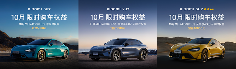 小米汽车,又发布10月份定车权益了,并且涵盖了其所有的3款车型。