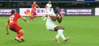 上半场第32分钟,杨一虎在防守的时候飞身踢到了奥斯卡上半身,吃到一张黄牌,这个动作还是很危险的啊。