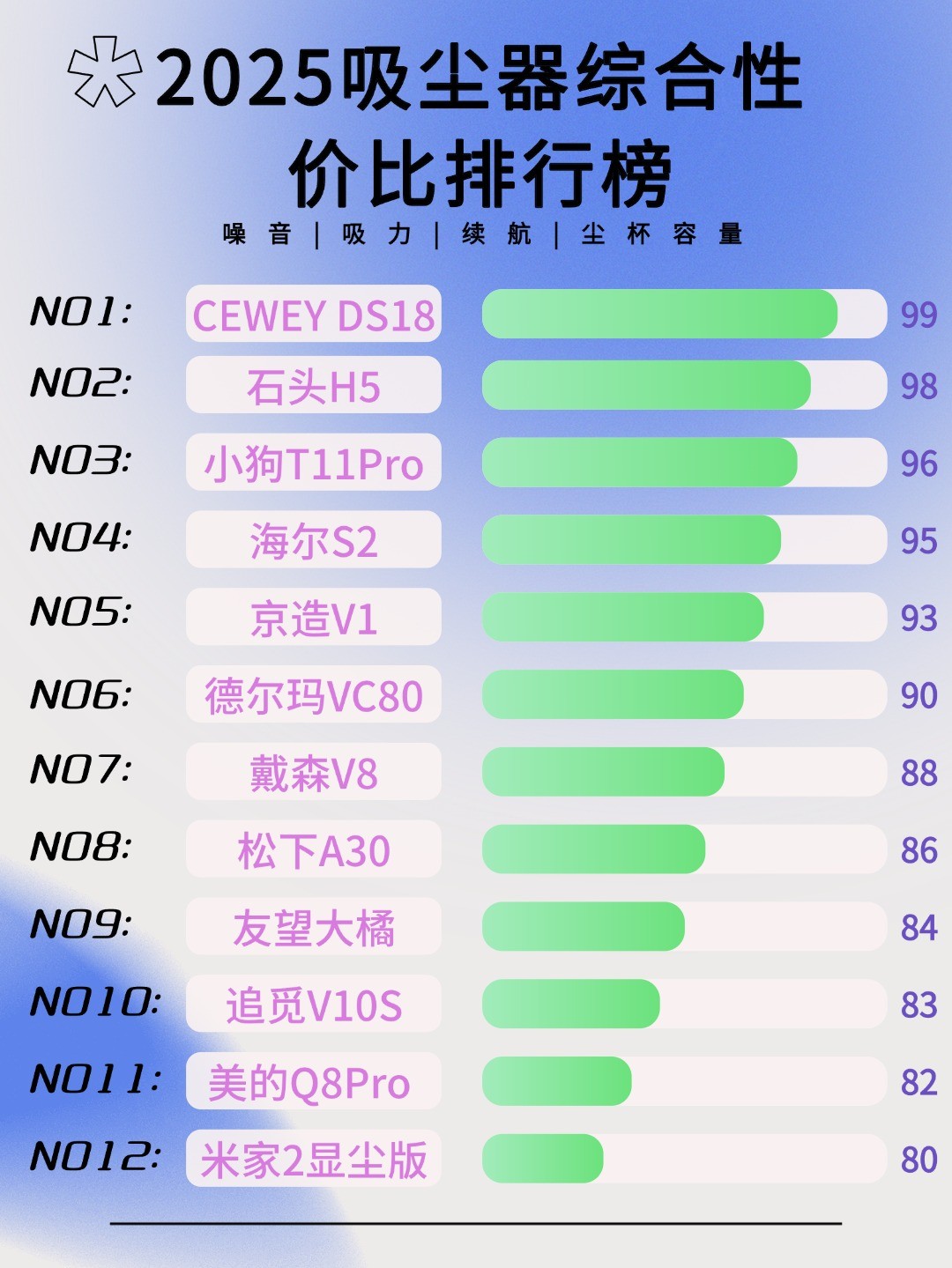 为了让大家更直观地了解2025年那款吸尘器好,根据上面提到产品的关键参数,先放一张2025年人气吸尘器实际表现榜的天梯图。