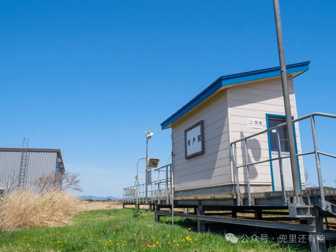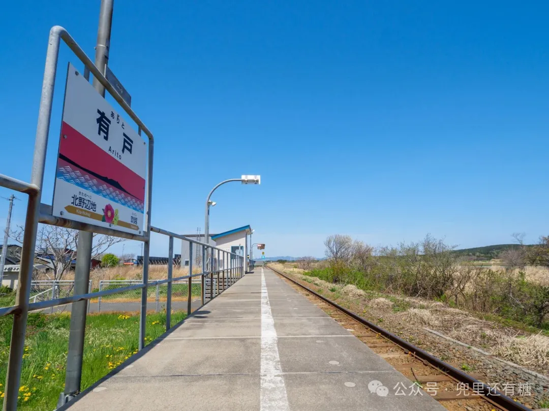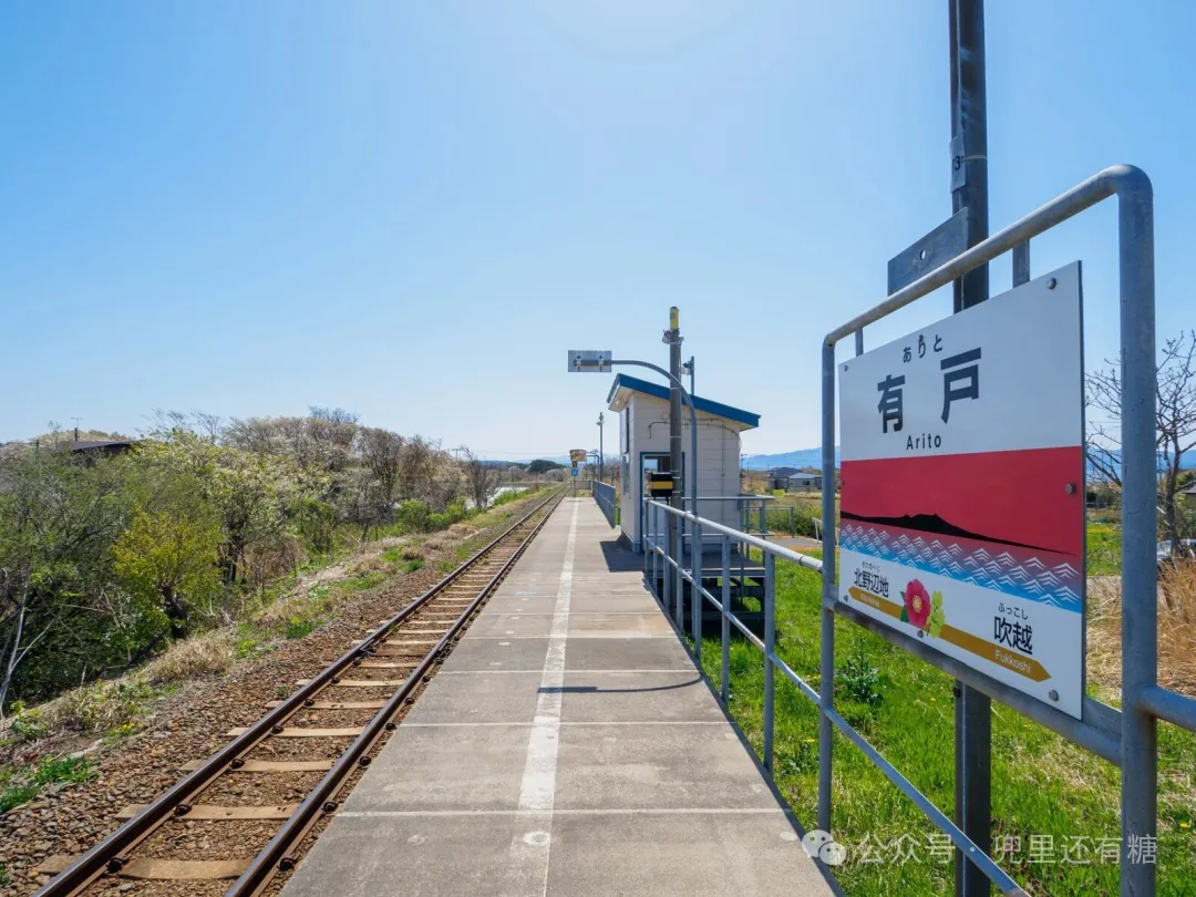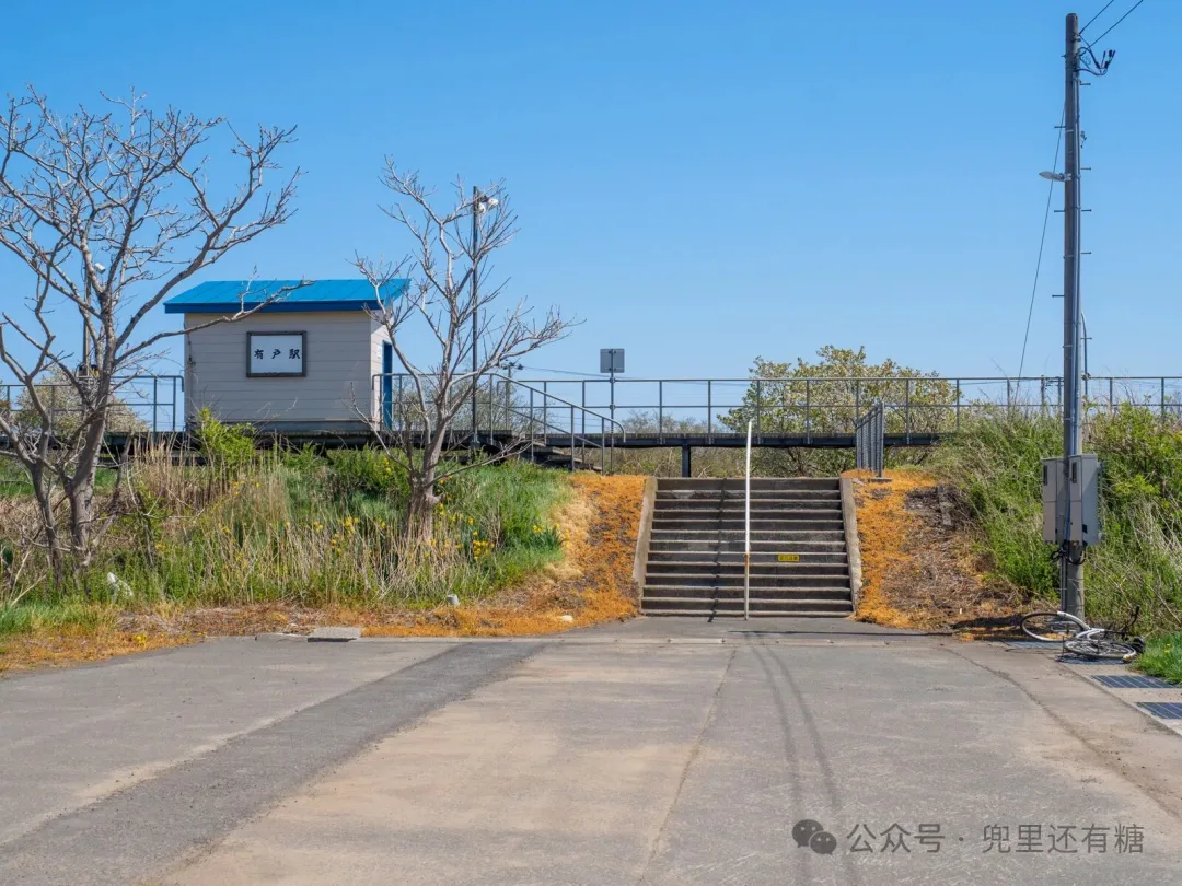 从平台的顶端向大海方向望去,虽然靠近大海,但看起来却像高原一样。顺便说一下,有户站和邻近的富越站之间的轨道路段特别靠近大海。