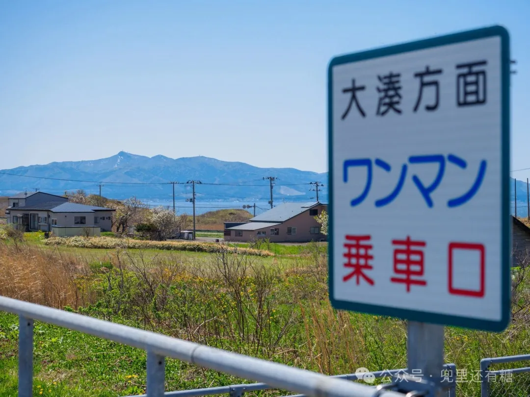 有户站的站名牌上也描绘了陆奥湾和山脉。不过,从山脊线看去,似乎是下北半岛北部的恐山山脉。最后一站大凑站的站名牌也是如此,看来是大凑线的常见设计。