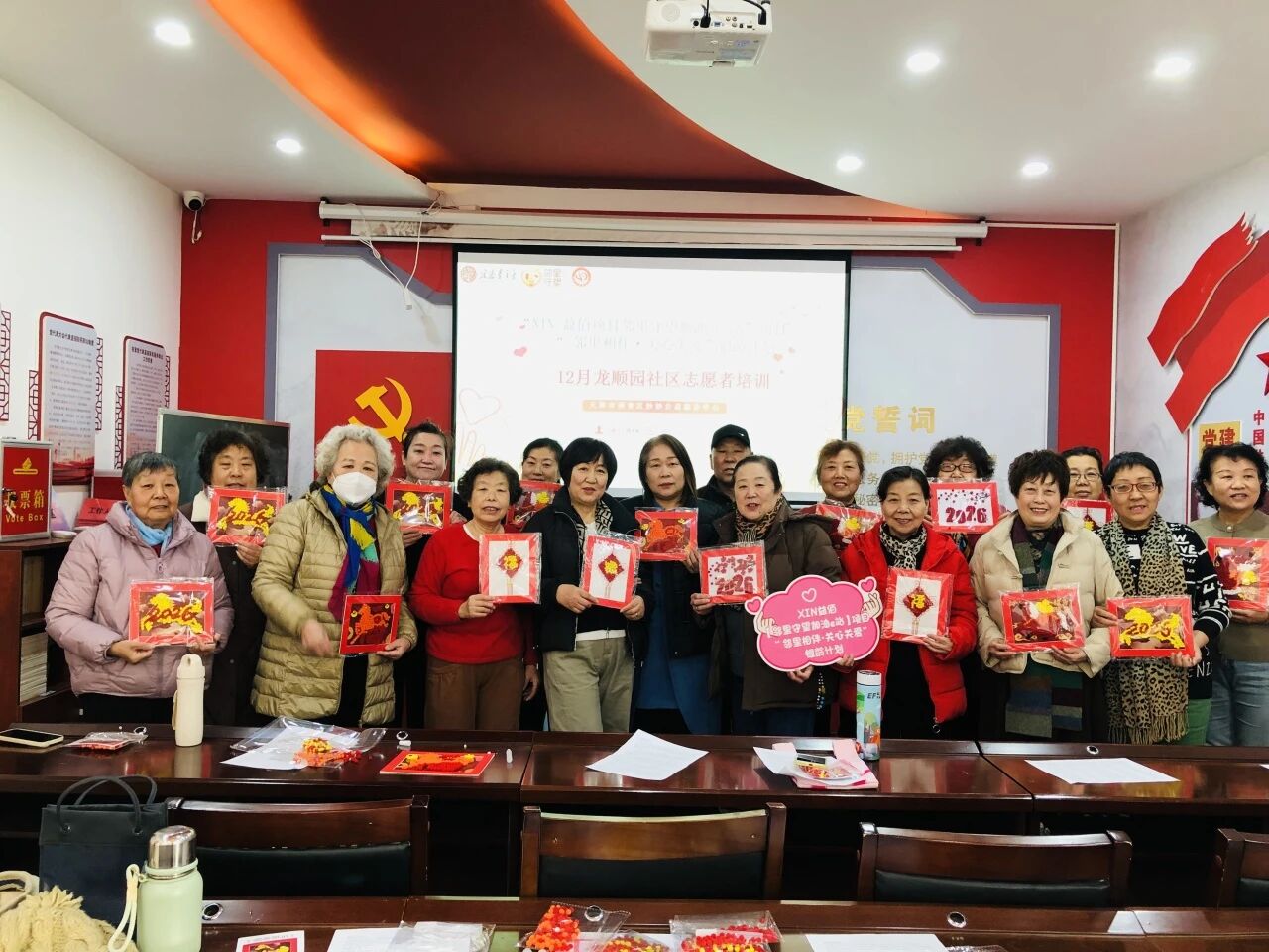 这一环节不仅让志愿者们在专注手作中体验了压力释放与心理状态,实践了刚学到的情绪调节方法,更通过共同创作增强了彼此的情感联结与团队归属感。作品完成后,部分作品将用于装饰社区公共空间,部分作品将和精心准备的鲜鸡蛋共同赠予社区高龄或独居长者,传递新年祝福。从反馈来看,志愿者们在与老人互动时更从容、更有方法,团队间的协作也更为顺畅,这正是系列培训期望达到的效果——让专业技术与人文关怀结合,让每一次入户都成为一次有温度的陪伴。
