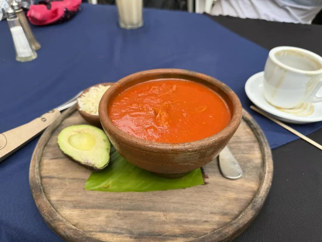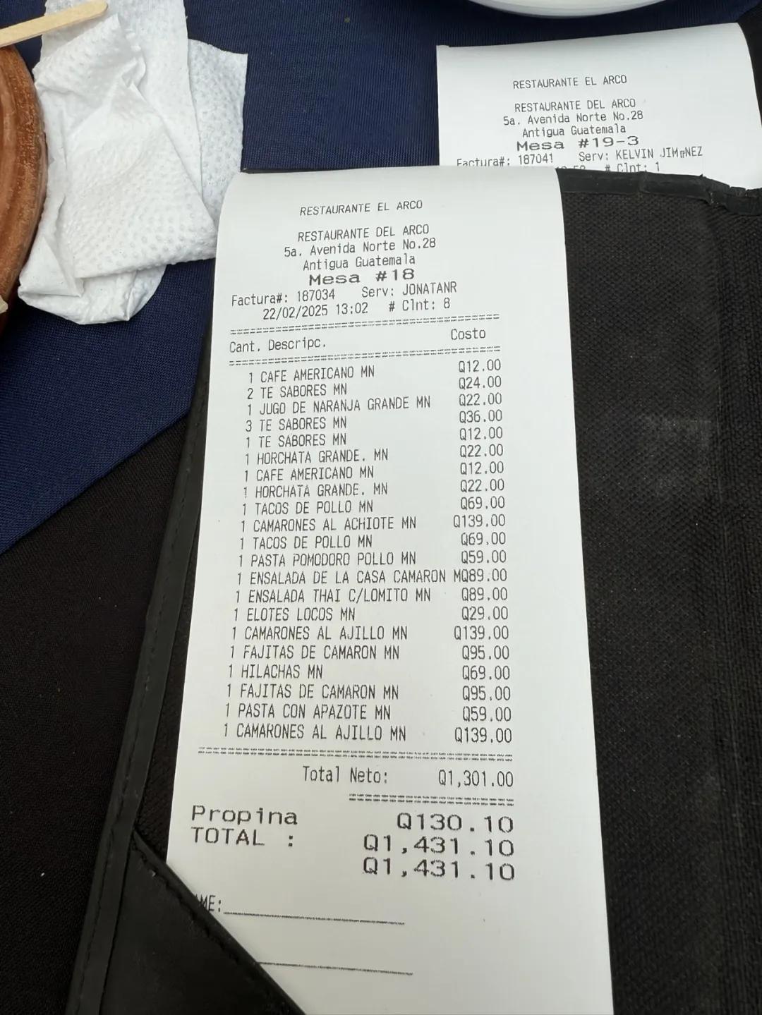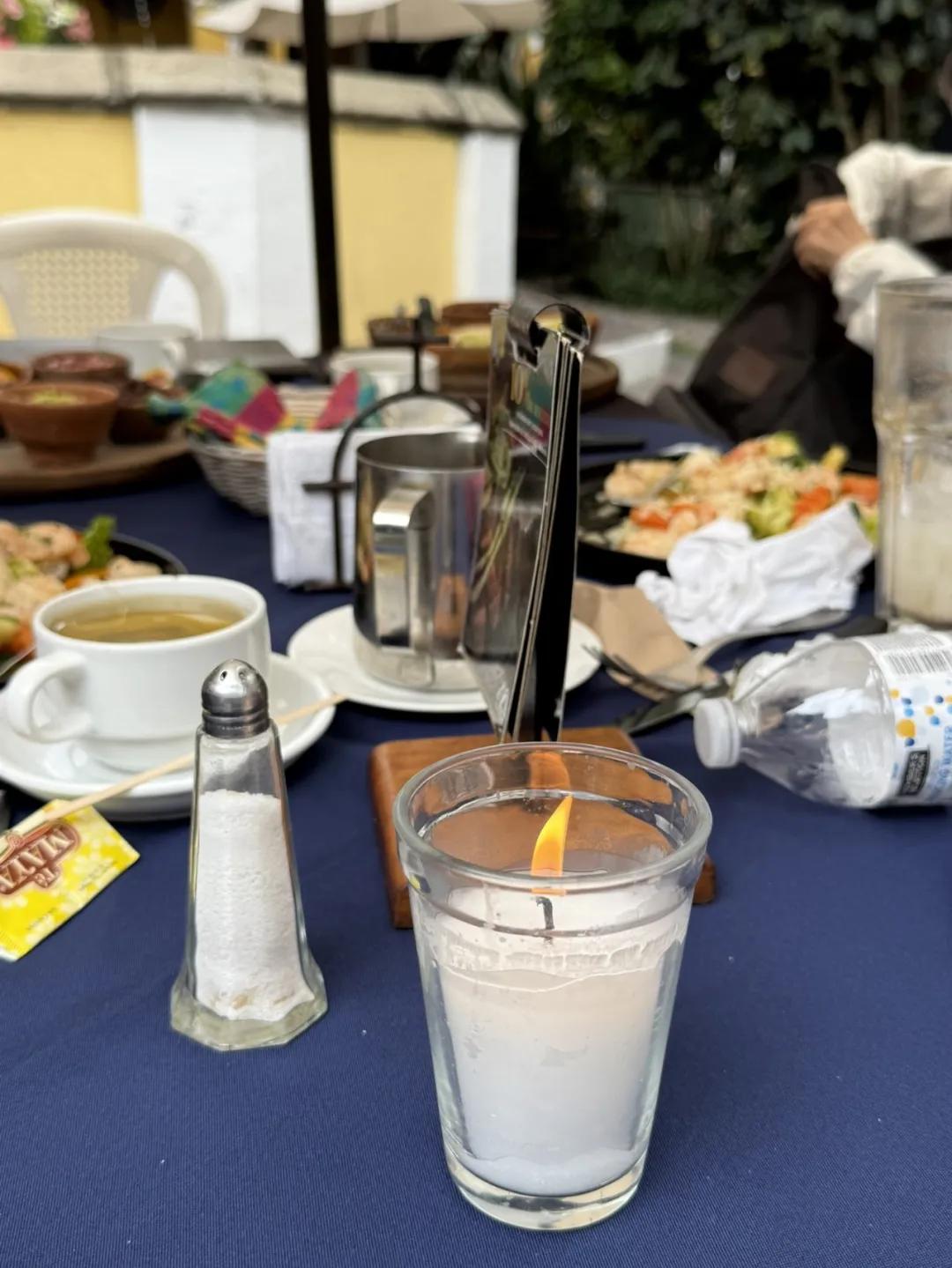 从教堂顶下来,原路返回,约3分钟,准时到达我预订的那家餐厅(Restaurante del Arco)。进去桌子已摆好,包括餐具。我们坐下来点菜,每家点的都不一样,我点了一碗意面,当地导游也和我们一起吃;记得冯老师还点了一根玉米,上面裹了些糖,还说很好吃。