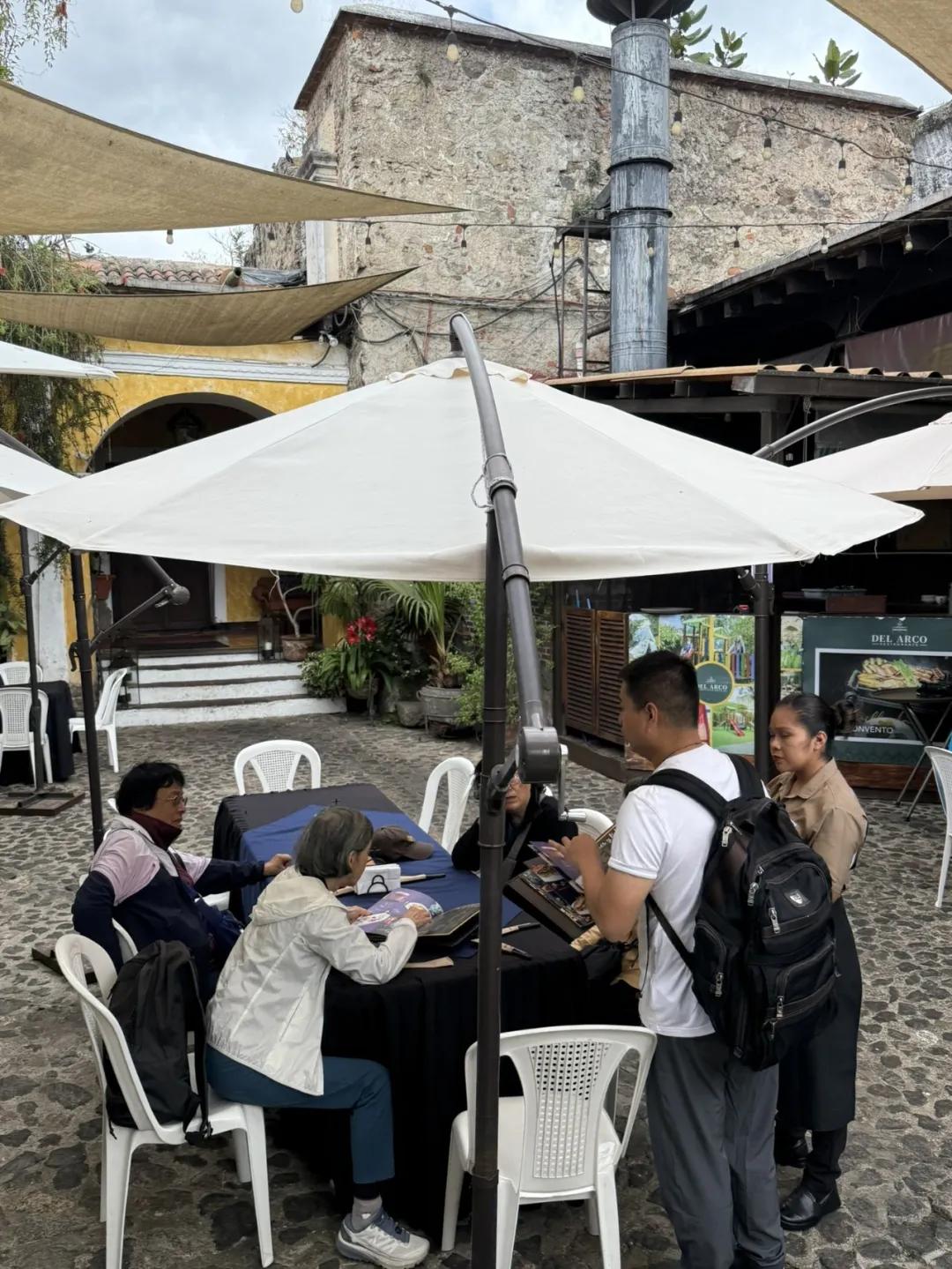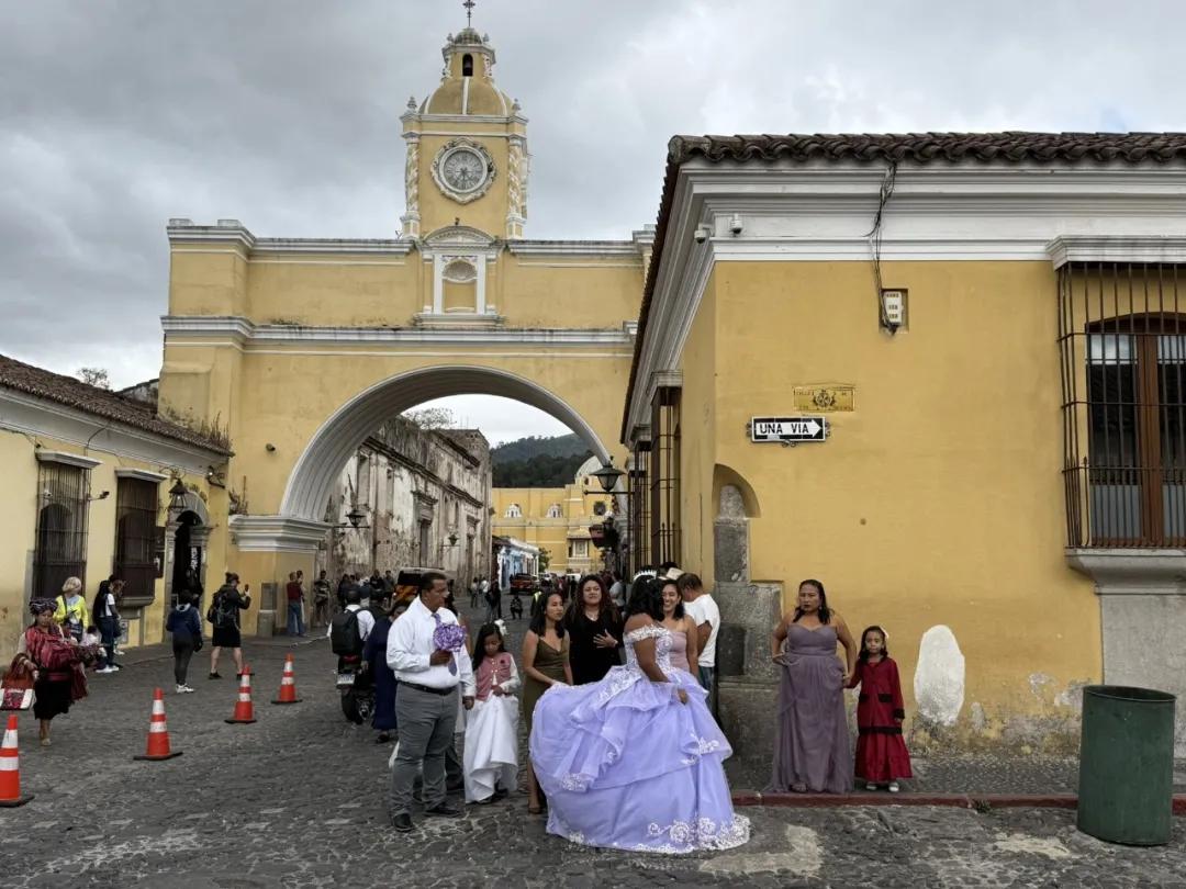 这个拱门最迷人的地方在于:站在拱门北侧往南看,城外的水火山巨大的锥形山体正好被框在拱门的弧度之中,构成了安提瓜最经典的一张名片。我们也都一一在最佳机位拍了照片。