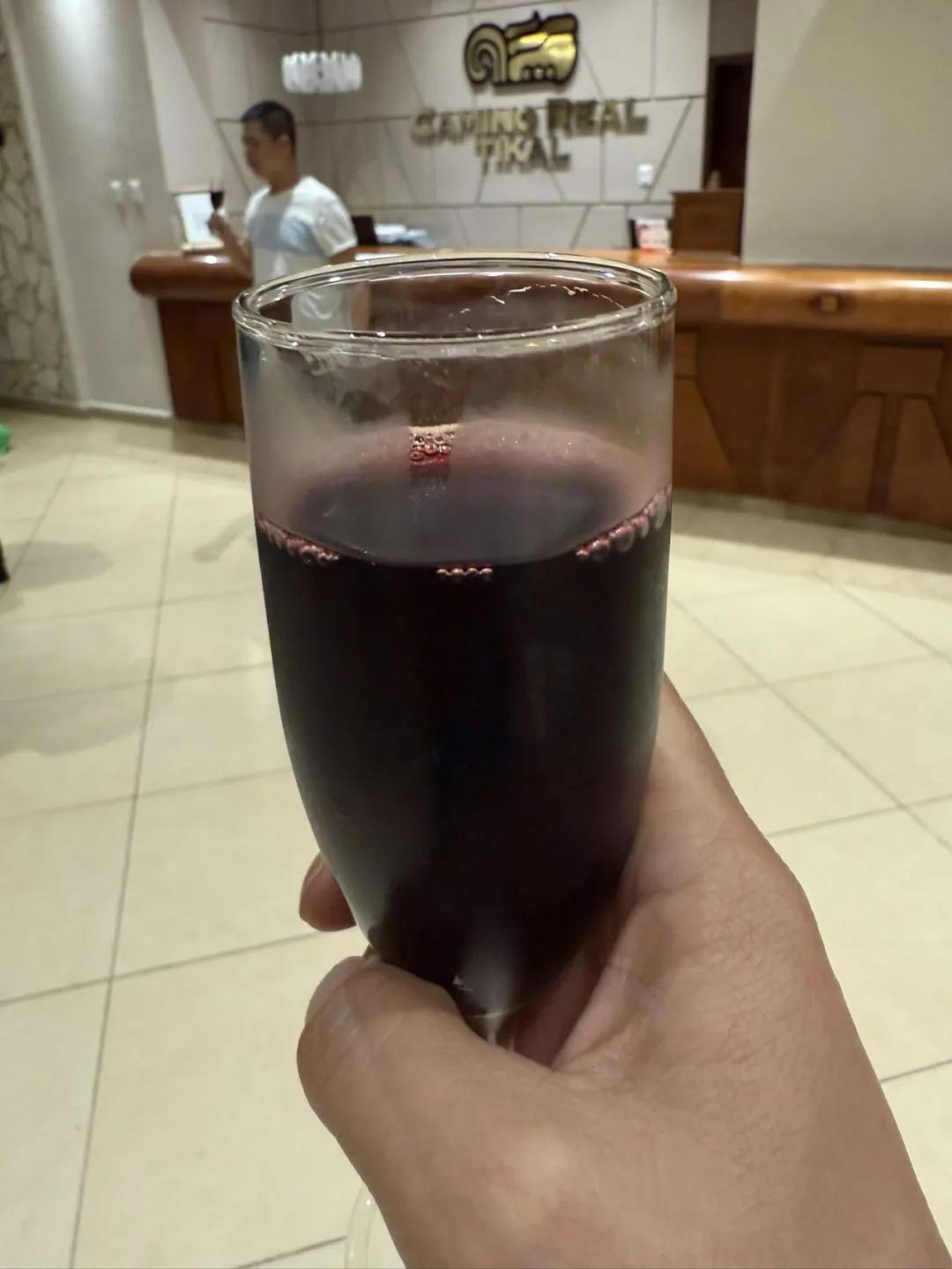 当地一名梅斯蒂索裔中年男子是我们的司机,人很热情。他载着我们,沿着两侧被高大树林包围的道路,向湖畔酒店驶去。前台给大家每人倒了一杯饮料,发了一张WIFI密码小纸条。