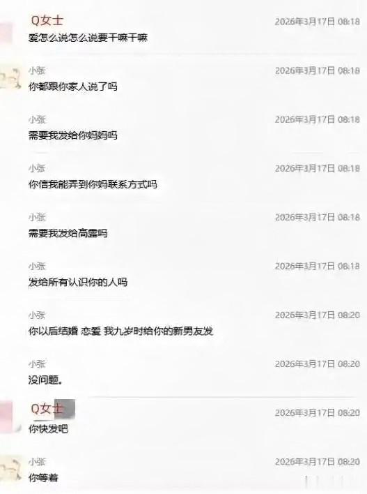 又是曝光Q女士的个人信息,又是口出恶言辱骂,姿态又疯又偏执。
