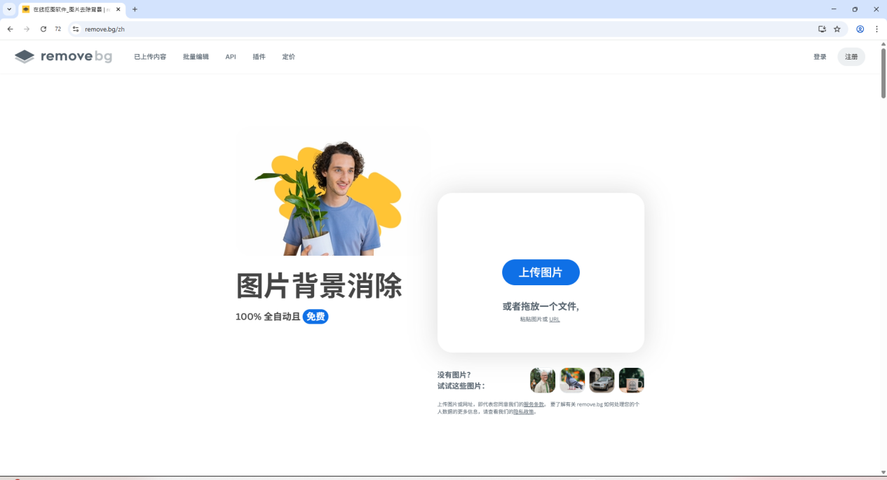 4、Remove.bg这是一个能让你一键自动去除图片背景的网站,不懂ps也没关系,只需要在这里上传图片,它就能自动精准识别,并一键抠出人物产品、汽车等各种主体,而且网站的ai算法特别牛,像头发丝、羽毛这些难搞的细节也能精准搞定。