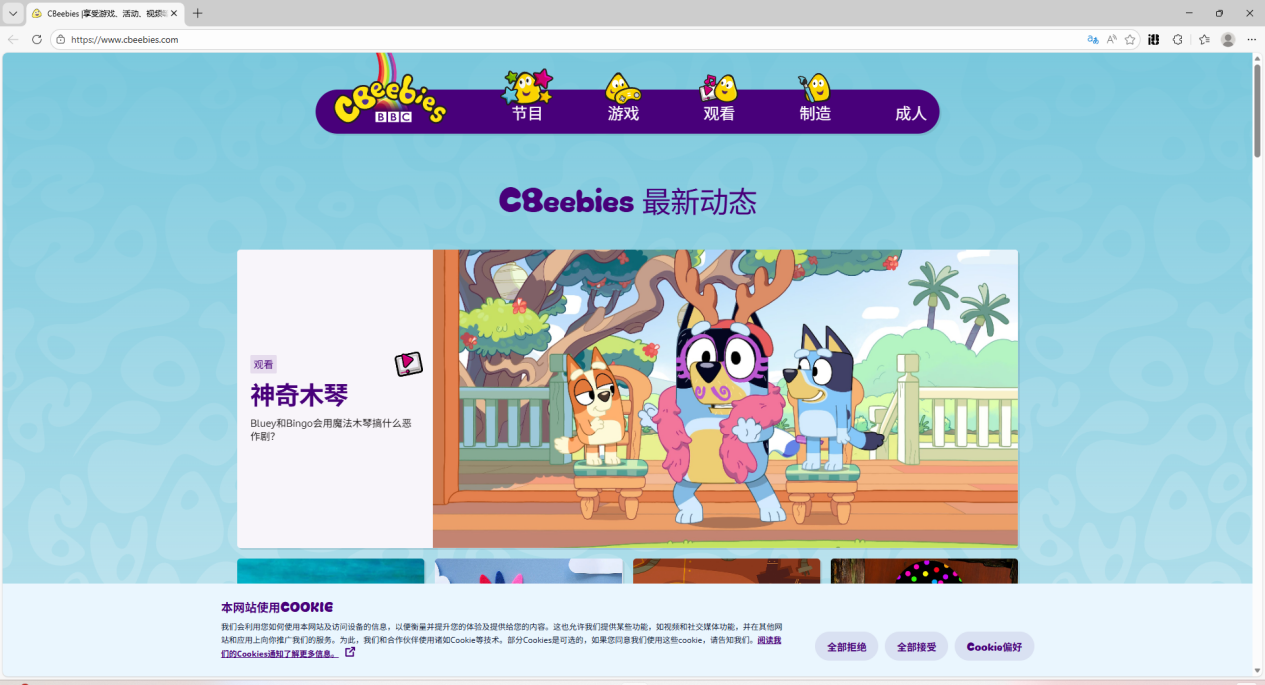 6、CBeebies这是BBC专门为孩子打造的英语启蒙网站,汇集了全球重量级的学龄前动画IP不管是火遍全网的布鲁伊,还是拿奖拿到手软的阿奇幼幼园甚至是经典的花园宝宝在这里全都能看,而且全是原汁原味的英式发音