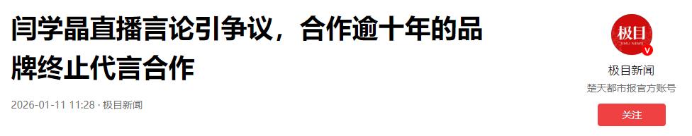 官媒的定调,让闫学晶的口碑彻底崩塌,后续的连锁反应也随之而来。