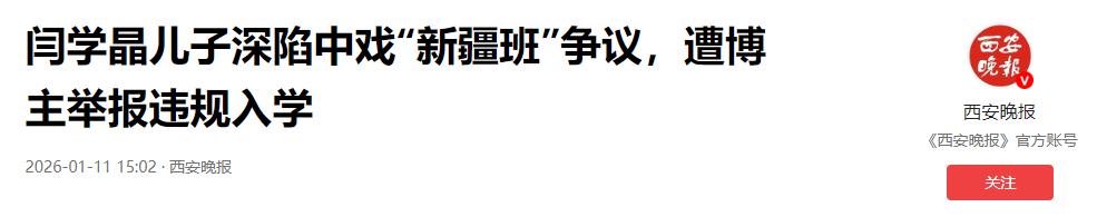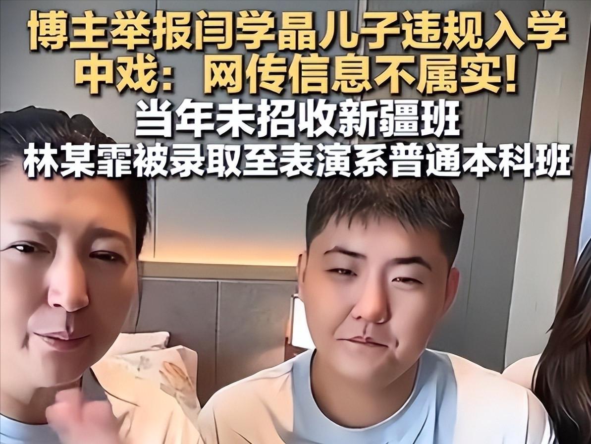 第二个噩耗是儿子林傲霏的中戏入学争议升级。闫学晶曾在直播间炫耀“新疆班分低,我儿子报了”,暗示儿子靠该政策考上中戏。