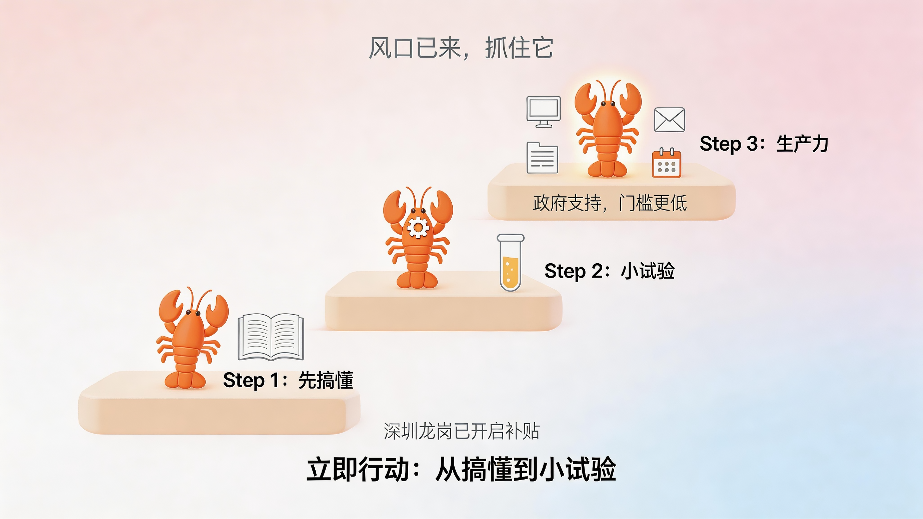 四、普通人怎么上车,有两条马上就能去做的建议读完《深入OpenClaw》,我最大的感受就是,机会一直都有,可就属于那些最先弄明白它的人要是你和我一样有紧迫感,那可以立刻做两件事其一,先弄清楚龙虾到底是什么,建议从《深入OpenClaw》的前三章开始看, 花两个小时把它基本的原理和设计哲学弄明白,俗话说磨刀不耽误砍柴,认知到位了,行动才不会出错。第二,从小规模试验入手试试,不用一开始就追求复杂的自动化,你完全可以先在本地部署一个最简单的OpenClaw,安装那么一两个安全可靠的技能, 让它帮你做一些重复性的小任务,比如说,每天自动整理下载文件夹,或者每周弄一次工作周报,先让龙虾从玩具变成工具,之后慢慢让它成为你的生产力系统,深圳龙岗已经在推行「免费部署服务+补贴」了,别的城市估计也会跟着跟进,政府都已经开始帮我们降低门槛了, 我们还有什么理由不去试试,最后我想问你,要是明天你就有一只能24小时帮你干活的龙虾了,你打算让它帮你做什么,欢迎到评论区唠唠,也许你的答案,就是下一个职场跃迁的起点