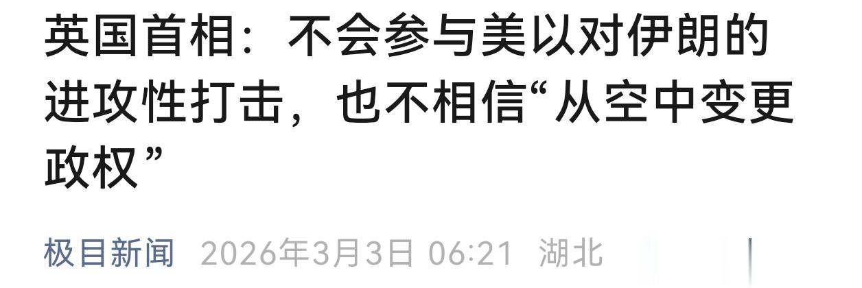 英国首相斯塔默也明确指出:美以不可能靠空袭就更迭伊朗政权。