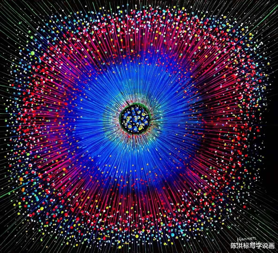再则是色彩体系的科学化。黄建南油画单幅作品使用颜色高达270种,远超西方印象派常规色域,并首创“银河光谱法”,通过微妙的色彩过渡模拟宇宙能量流动,被英国收藏家称为“超越科学家的想象力”。