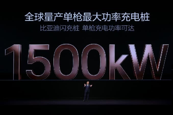 为匹配第二代刀片电池的闪充速度,比亚迪全新开发闪充桩,单枪充电功率达到 1500kW,成为全球量产单枪最大功率充电桩。这款闪充桩搭配超级快放储能系统,成功突破电网容量限制,且不会对电网造成损害,成为对社会最友好的充电解决方案。