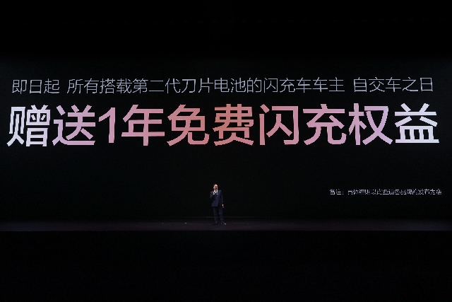 发布会现场,比亚迪还为用户送上重磅福利:所有搭载第二代刀片电池的闪充车车主,自交车之日起,可在全国闪充站享受 1 年免费闪充权益,畅快体验闪充技术。比亚迪同时承诺,免费闪充权益到期后,充电收费标准将与行业保持一致,不额外增收费用,让技术红利真正普惠用户。
