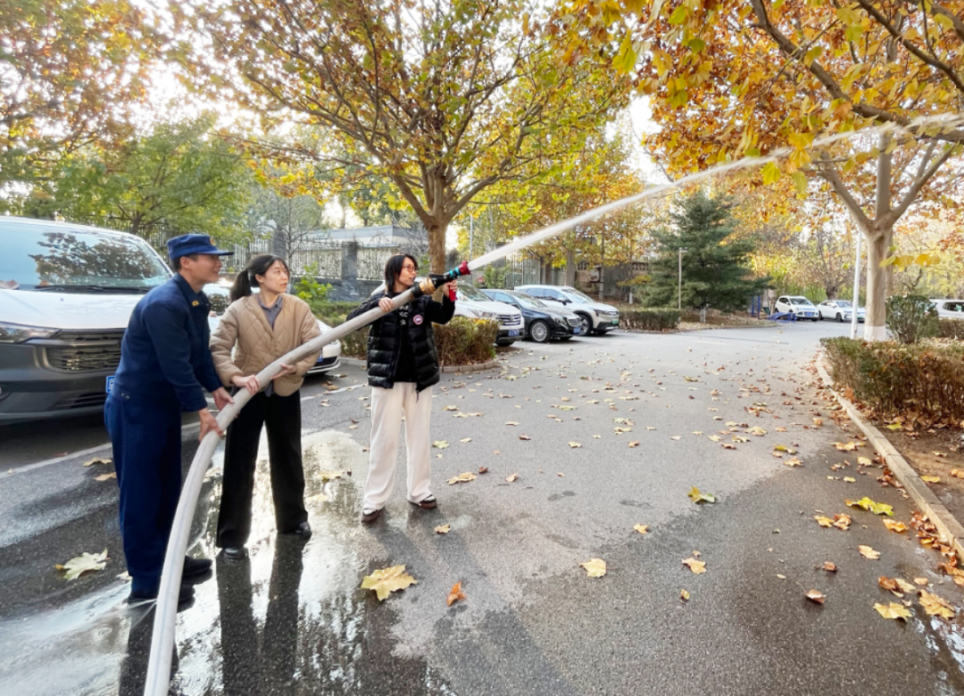 消防人员对灭火器“提、拔、握、压”的使用要领和消防栓出水操作流程进行了演示,参训人员分组依次进行操作,熟练掌握了初起火灾的扑救技能。