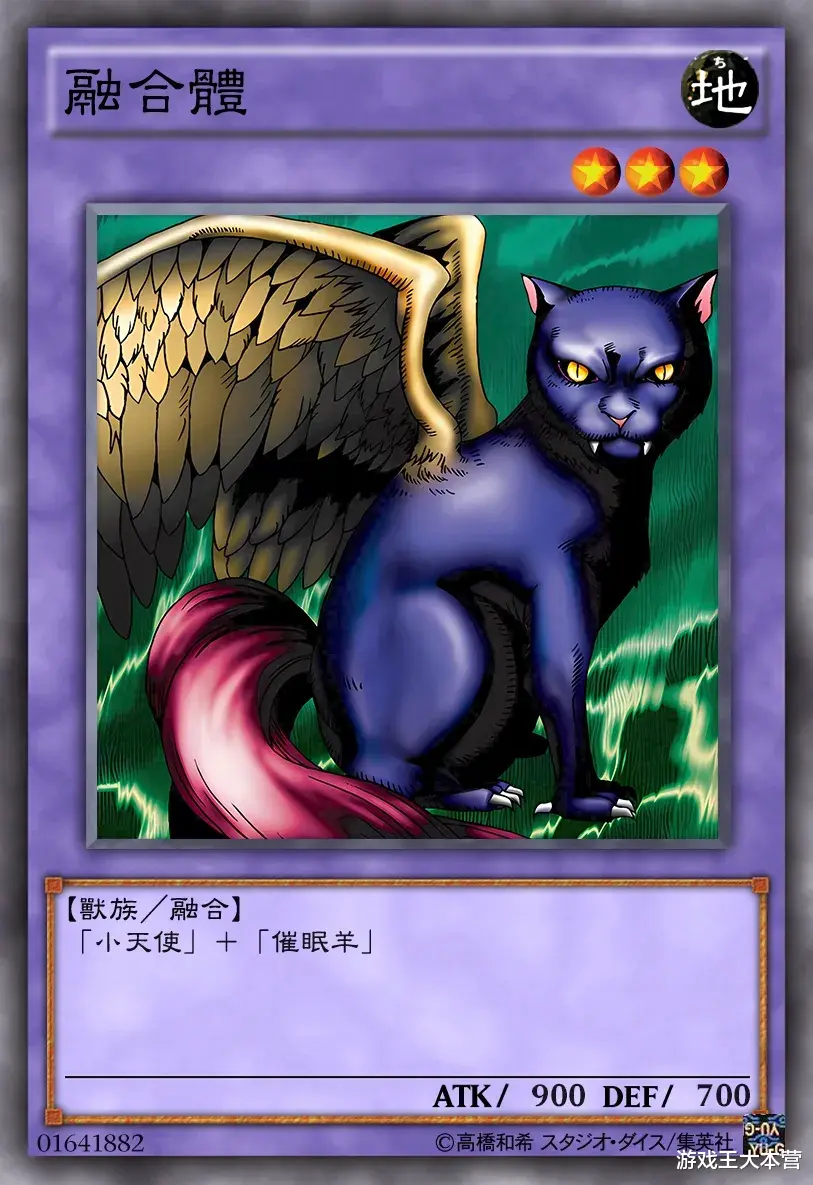 初代游戏王中,两只指定怪兽融合的融合卡。画风简单朴素,没有复杂的细节渲染,效果也格外简短,有的甚至没有任何效果,这些朴素