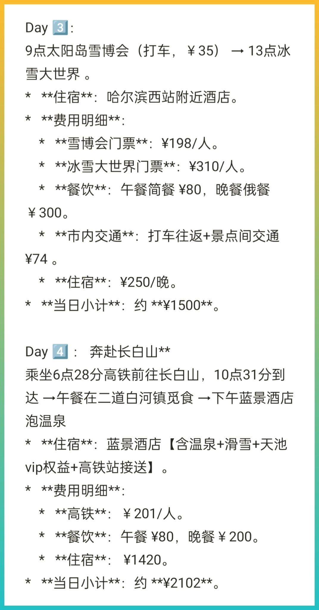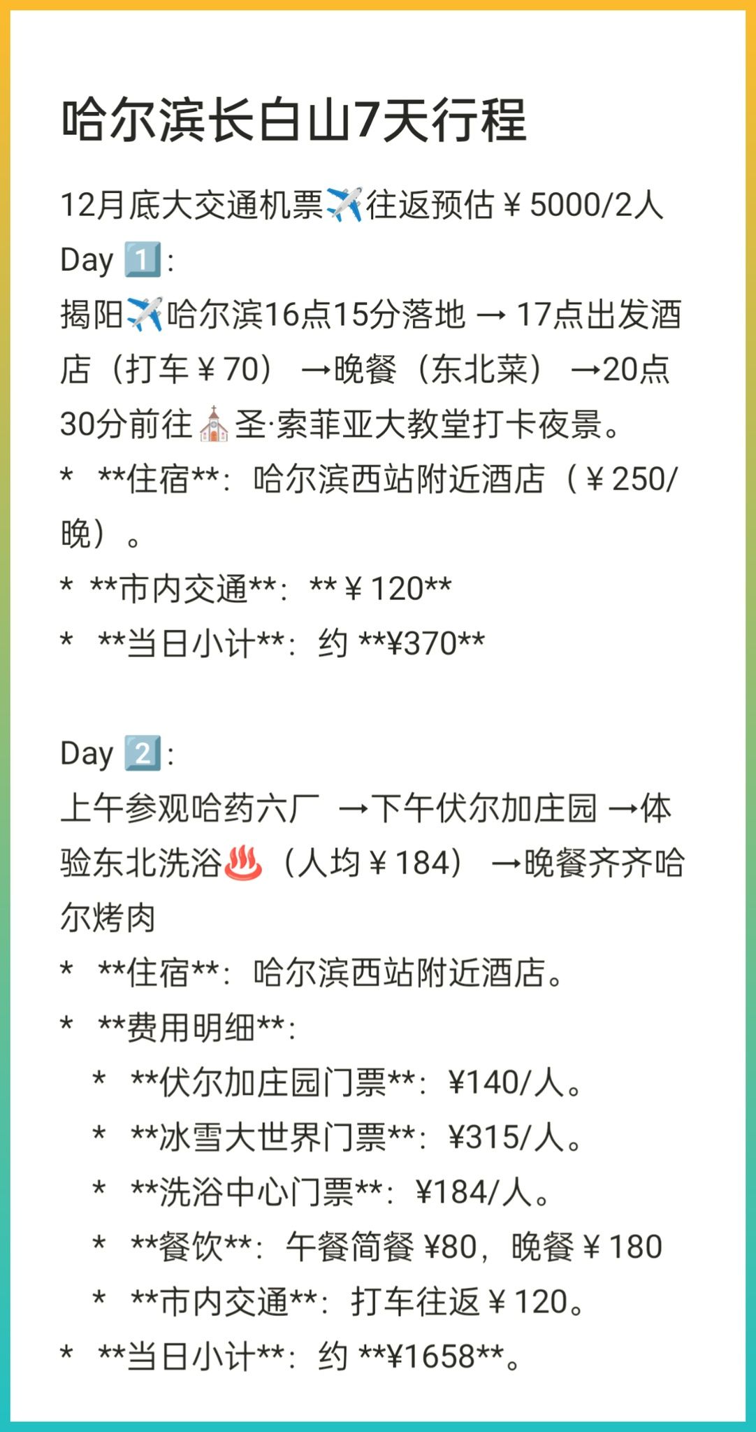 大家好呀,今天要来聊聊12月哈尔滨+长白山的7日冰雪旅行计划,是我最近一整个心动的行程❤️!说真的,冬天的东北,就是中国的瑞士——雪厚得像打翻了的奶油盘,空气冷到能咬出歌声。等这趟旅程结束,你大概会像我一样:不想回!太爽了!!
