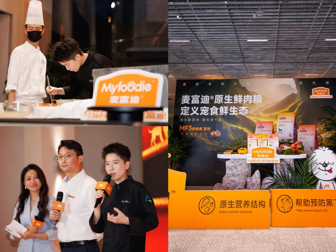 在“原生鲜肉粮”的发布会上,品牌邀请《一饭封神》冠军厨师团队,以一场“人类高级定制晚宴”为参照系,巧妙类比宠物粮的研发逻辑:晚宴对食材产地、新鲜度的极致追求,对应着麦富迪对全球优质产地的严苛溯源与对“鲜肉”原料的坚持;厨师对火候、调味精准到秒的掌控,如同宠物食品生产中对温度、时间和营养留存率的精密控制;而最终对菜品色香味平衡的追求,则直接对应着宠物粮的科学营养配比与极致适口性。