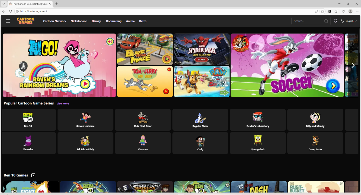 3、http://Cartoongames.io这是一个超赞的免费在线卡通游戏网站,收录了超多经典系列、海绵宝宝、猫和老鼠、蜘蛛侠、超人等应有尽有,还涵盖迪士尼相关游戏。不管是孩子还是怀旧党都能玩得尽兴,关键是完全免费,不用注册登录,点开就能直接唱完,无聊时打发时间再合适不过。
