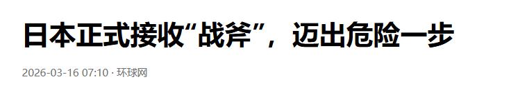 日本正式接收“战斧”,迈出危险一步——2026-03-16 07:10·环球网.