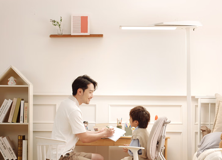 在核心参数上,照度经过实际测量,桌面中心照度高达1800lx,而且照度均匀度低至1.12,这数据相当出色。再加上它独特的上下双发光面设计,轻轻松松就能照亮20平方米的空间。上发光面还支持左右120°旋转调节,能精准消除室内的暗角,让整个空间都亮堂堂的。