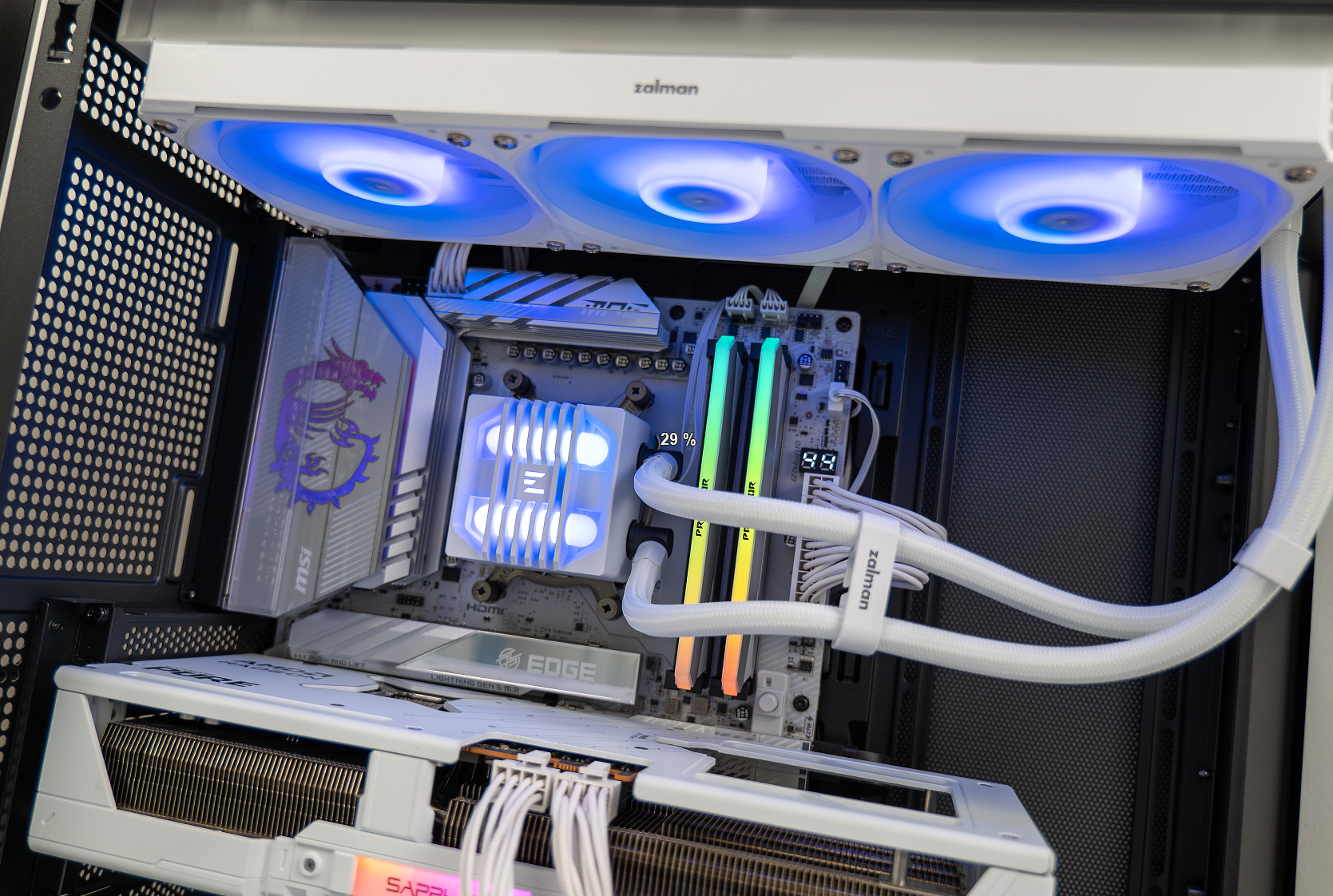 最后聊聊大家最关心的性价比。ZALMAN A36 黑色款京东售价 379 元,白色款 399 元,在同级别 360 水冷中,价格优势十分明显。ZALMAN A36 在散热性能、静音控制、颜值设计上全面领先,尤其是 3300 转 / 分钟的高性能水泵、ARGB 流体动态水冷头、纯铜底座这些配置,在同价位产品中堪称 “降维打击”。