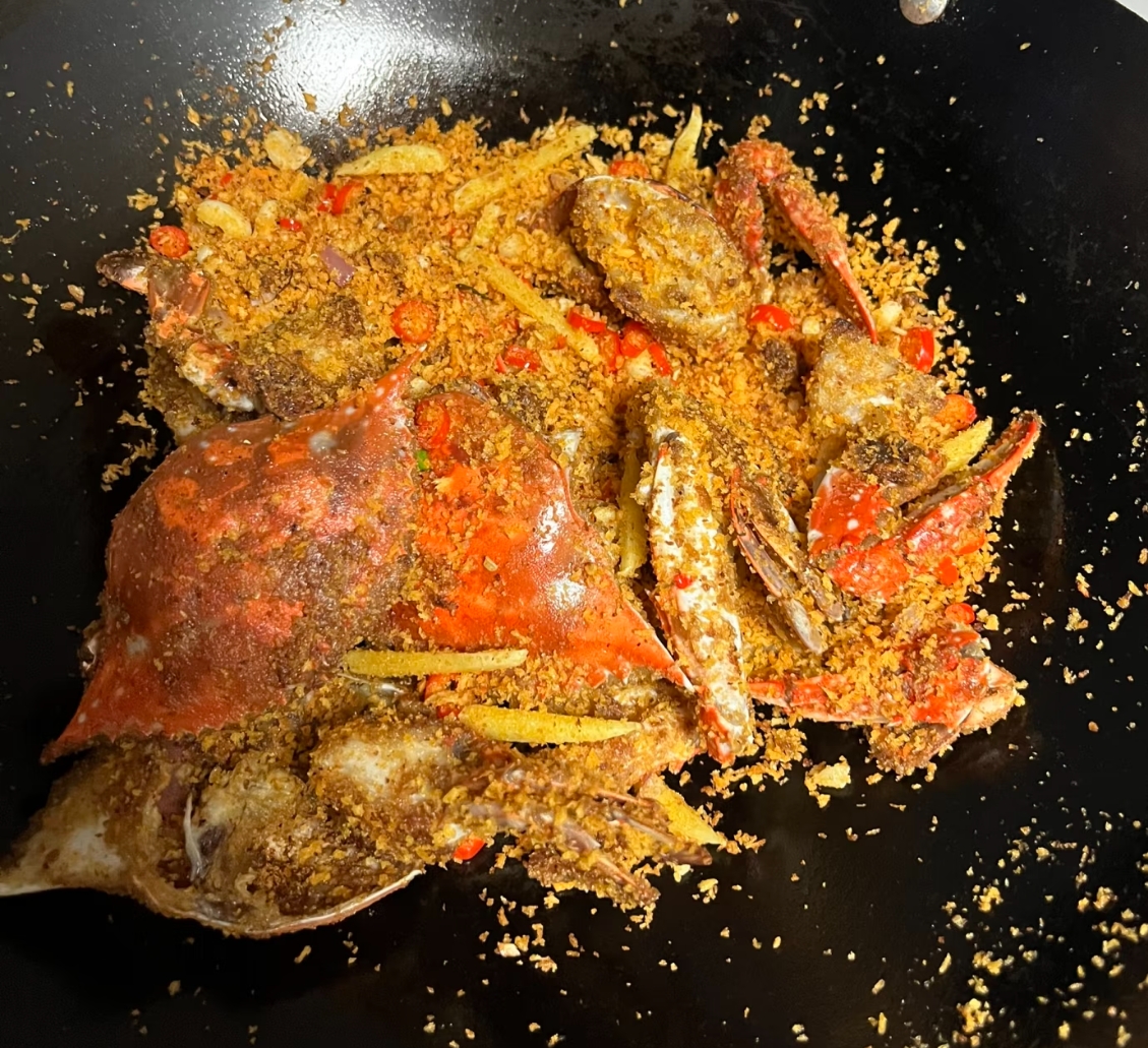 午后的阳光斜斜地照进餐厅,盘中的蟹骨渐渐堆起,指尖还残留着淡淡的蒜香和油润。这道避风塘炒蟹,不是为了宴客,也不是为了应付差事,仅仅是为了取悦自己,为了给平淡的生活加一点料。用简单的食材和稍显繁复的工序,为自己打造了一场私人的味觉盛宴。从挑选食材时的期待,到炸制金蒜时的专注,再到享用时的满足,这一连串的画面,构成了生活里最真实的质感。原来,只要愿意花点心思,哪怕是在最寻常的午后,也能把日子过得热气腾腾、有滋有味。