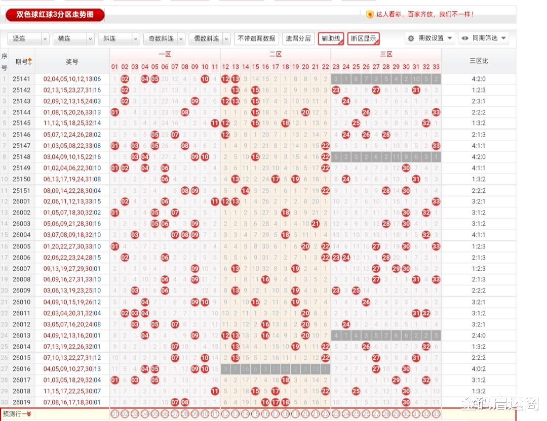(思路:一区小号回补,三区大号连坐,奇数占优,蓝球转偶)