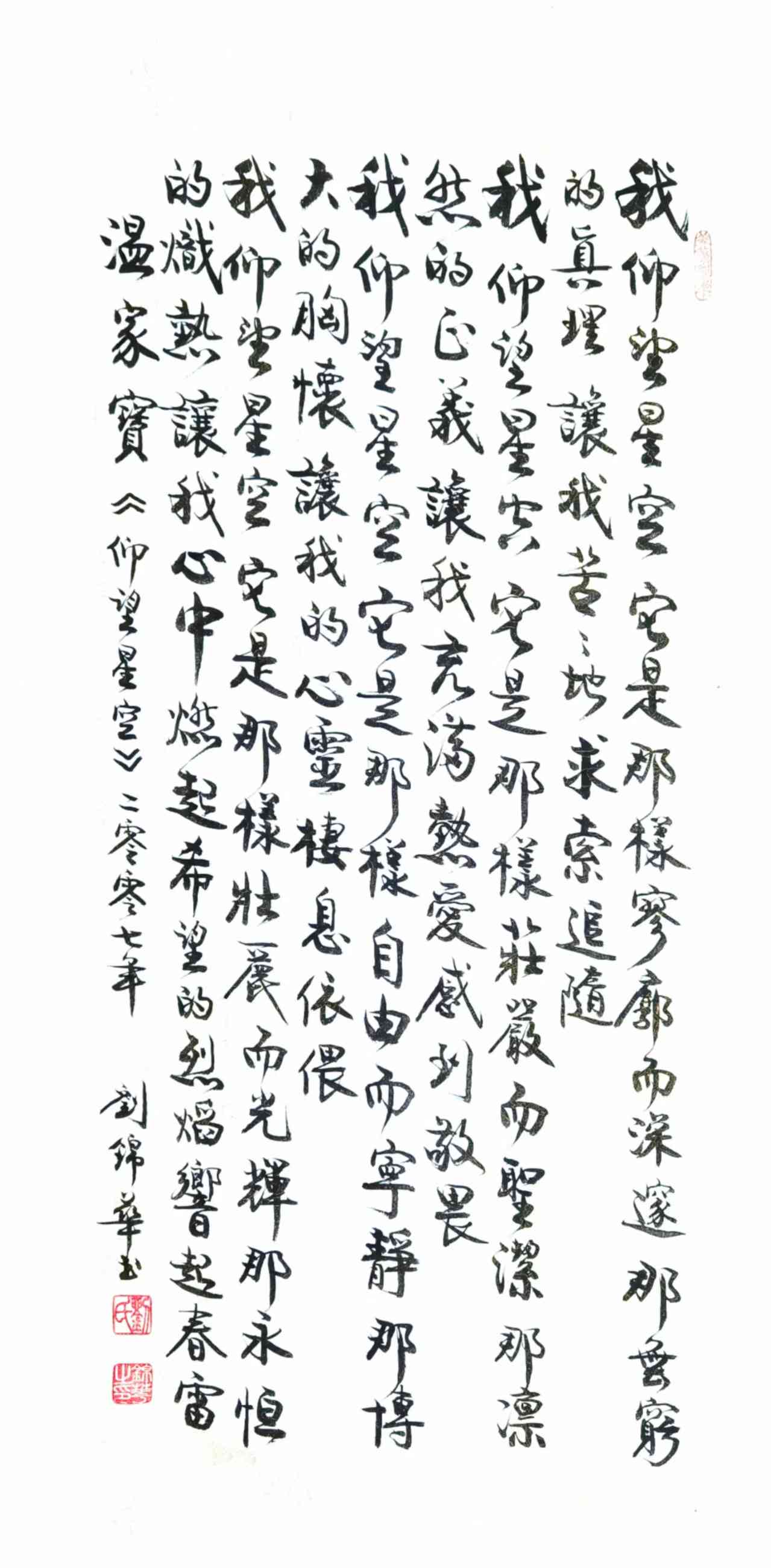 刘锦华,男,汉族,香港特别行政区人,1950年出生,高中文化程度。中国书法家协会会员,香港特别行政区文联书法家协会会员,国家一级书法师,中国国际书画艺术院院士,全国职业信用评价网高级书法培训师。 在香港从事广告设计和制作,参与大型基建工程“大老山隧道工程”,“大榄隧道工程”,“大屿山新机场工程”等大型广告制作。 多次获得全国性书法比赛金奖,特别金奖。