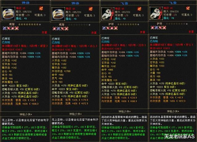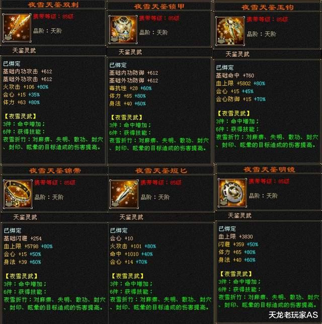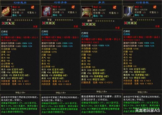 防具是虽然不是全套的全属性,但是也都是有闪避、体力、身法、会心的顶尖极品。