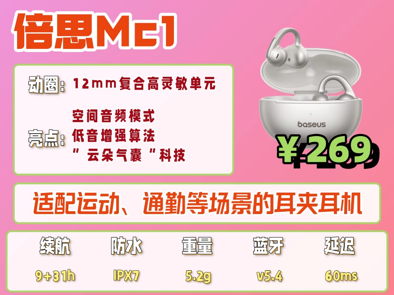 推荐理由:一款适配运动、通勤等多种场景的实用型耳夹耳机